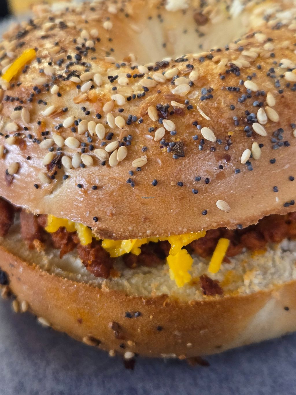 I posted a Pic of the menu options. There are not any other place in Manassas that I know of for a vegan breakfast. They actually didn't Jane the Vegan egg the day we came. But the chorizo and cheese bagel and cheezy tots hit the spot. Great oat milk chai latte!