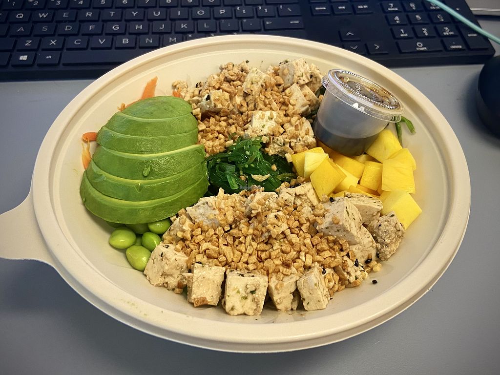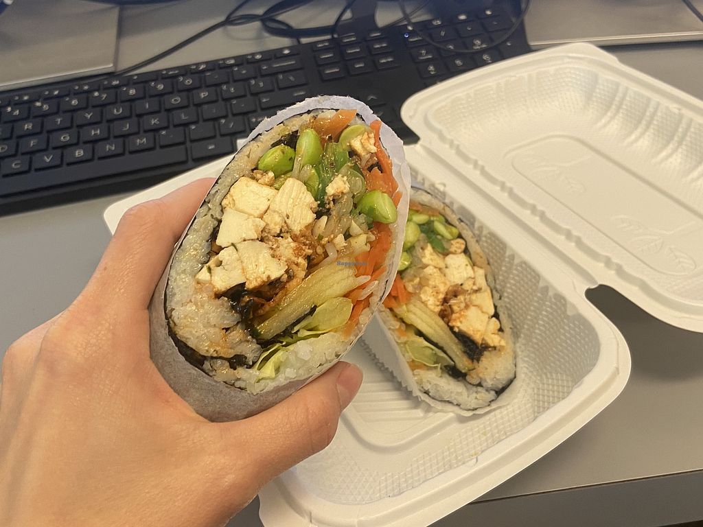 Serves meat, vegan options available. Asian fusion restaurant with vegan choices. Menu includes customizable poke, ramen, sushiritto, bibim bab and soba noodle bowls as well as various sides. Open Mon-Fri 11:00am-8:00pm, Sat 11:30am-8:00pm. Closed Sun.