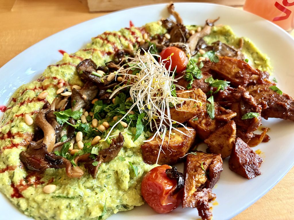 Vegan restaurant serving regional German dishes. The menu changes seasonally and in addition to the a la carte menu, there is also always a dish of the day and a daily changing lunch deal (the website shows what's on offer). Choices could include carrot lox with horseradish, jackfruit fritters with pumpkin, and tagliatelle in madeira-miso-cashew cream. Companion animal friendly. Open Tue-Fri 11:30-14:30, 17:00-21:00, Sat 12:00-21:00. Closed Sun & Mon.