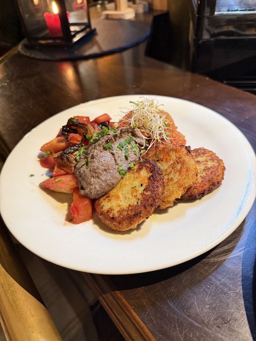 We came here while visiting Rostock and really enjoyed our meal. We had the creamy nutballs which were absolutely amazing as well as several mains and a desert. The portions are big, and everything on the plate has a distinct but complementary flavor and texture. The service was excellent as was the ambiance.