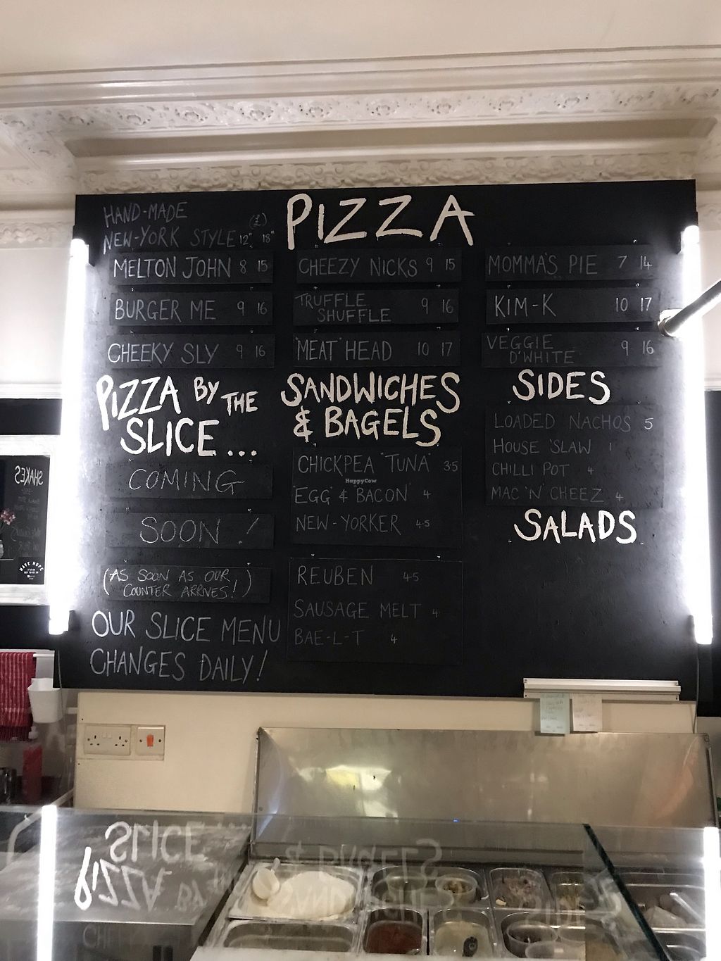 Diner and coffee bar est. Jul 2017. Serves nine varieties of vegan pizza, sandwiches, bagels, salads and sides. In a historical listed building with limited disabled access; the team will assist guests up steps if needed. Confirmed closed, Feb 2020.