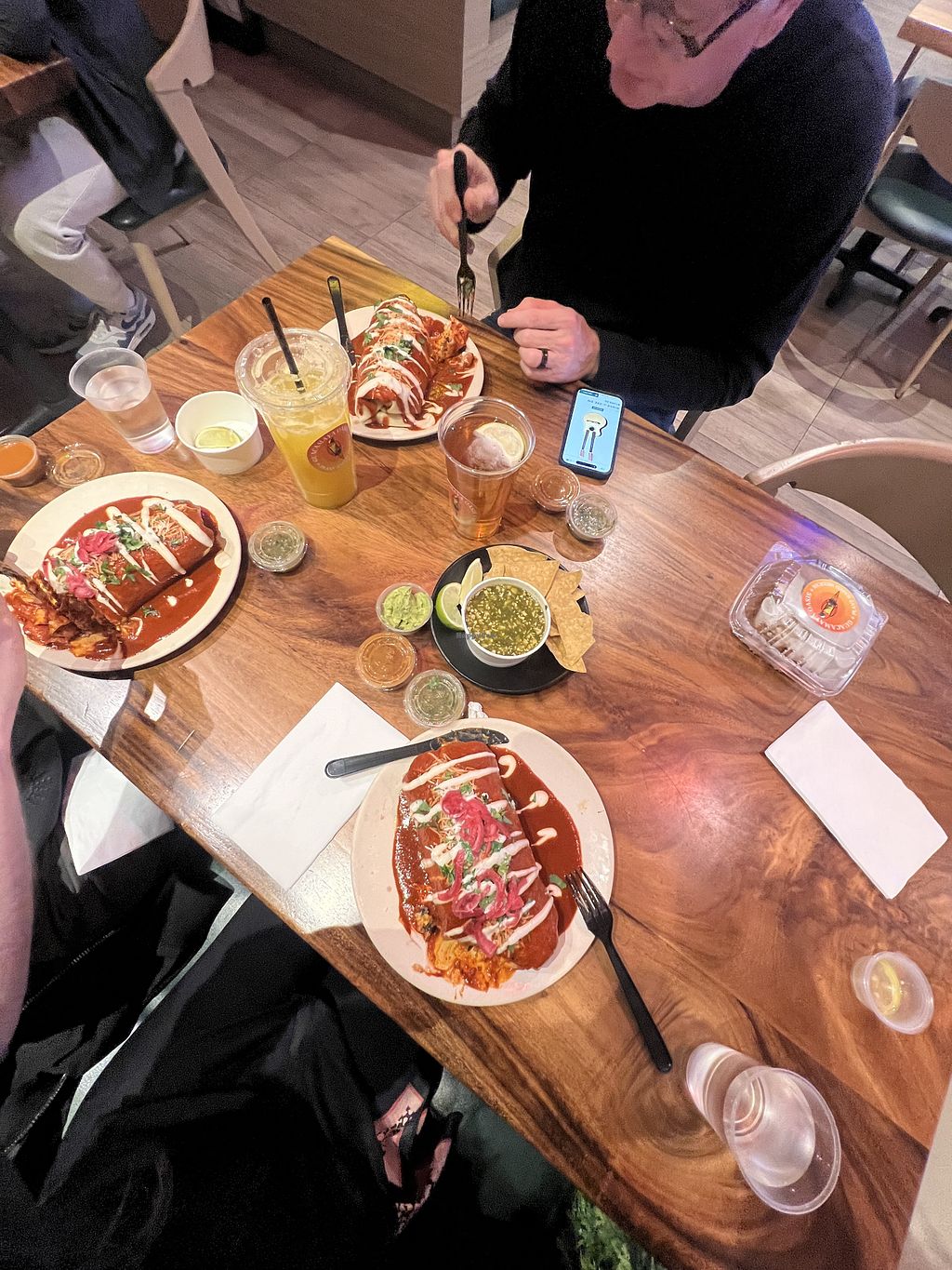 Ordering was not easy. While everything was plant based, nutrition info was available. Ordered Shrimp tacos which seemed to be oily. Would not have ordered it had I known it was going to be that oily. My wife ordered Chili reilleno burrito which was fine.