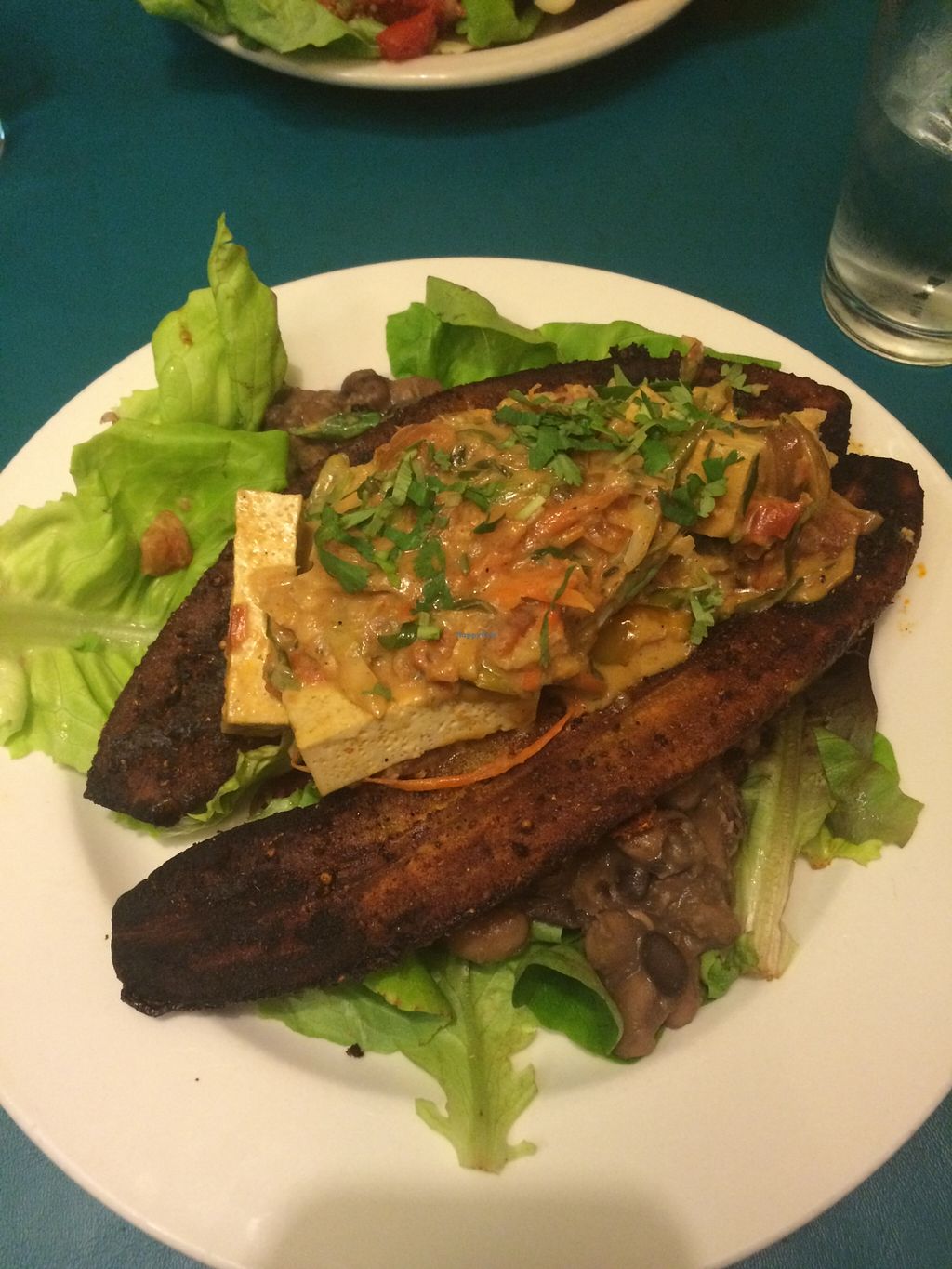 I called ahead and they helped me pick a vegan friendly dish of fried plantains that had black beans, tofu, carrots, red bell peppers, peas, onions and a delicious coconut curry sauce.