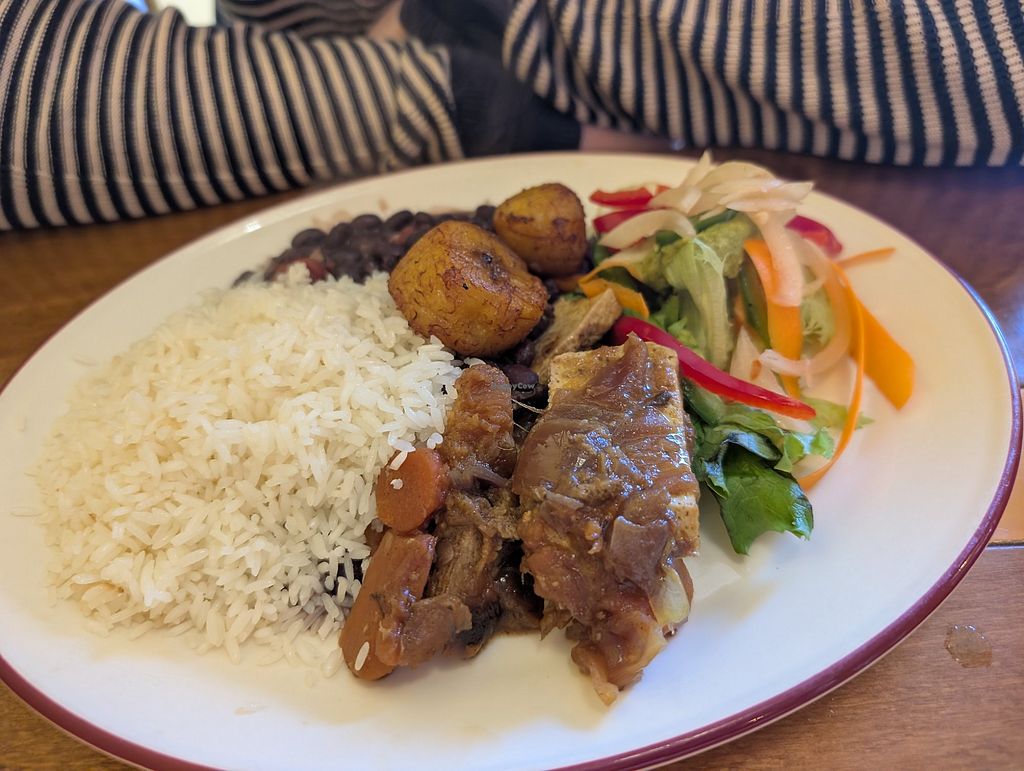 Serves meat, vegan options available. Caribbean Latin American cafe and coffee shop offering vegan breakfast, vegan sandwich, cassava, plantain, and empanadas. Provides oat milk for coffee. Open Mon 09:30-17:00, Tue 09:00-05:00, Wed-Sat 09:00-17:00, Sun 09:00-18:00. Closed Mon.