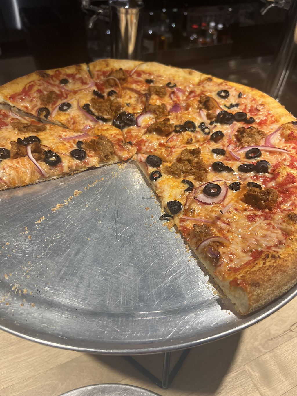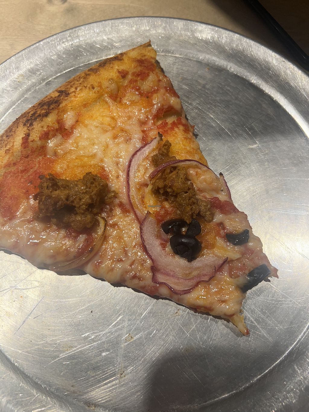 Vegan cheese, beyond sausage, red onion, black olives
