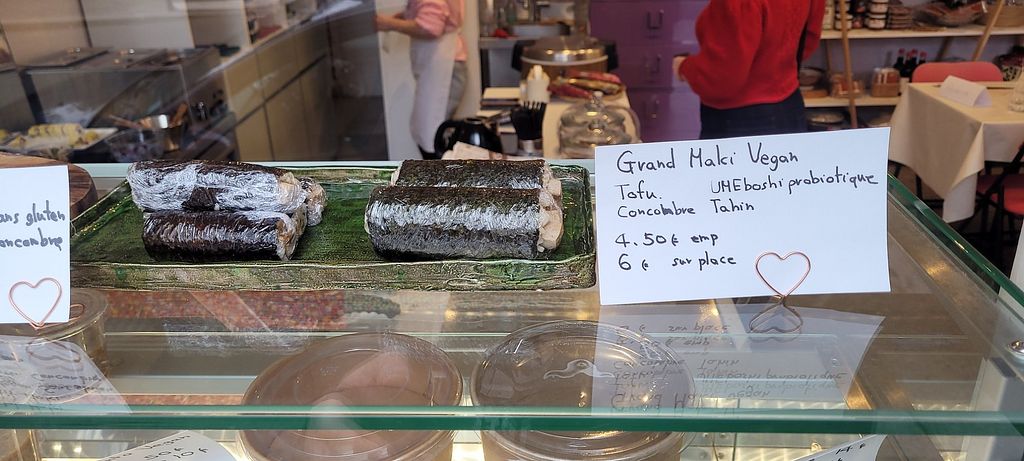 Cute japanese café, serving a bowl, changing daily, makis and desserts : cheesecake and pudding. Everything is homemade, including the seitan. The bowl has a very delicate taste and is very nourishing (I had difficulties finishing the big one, even with a big appetite)