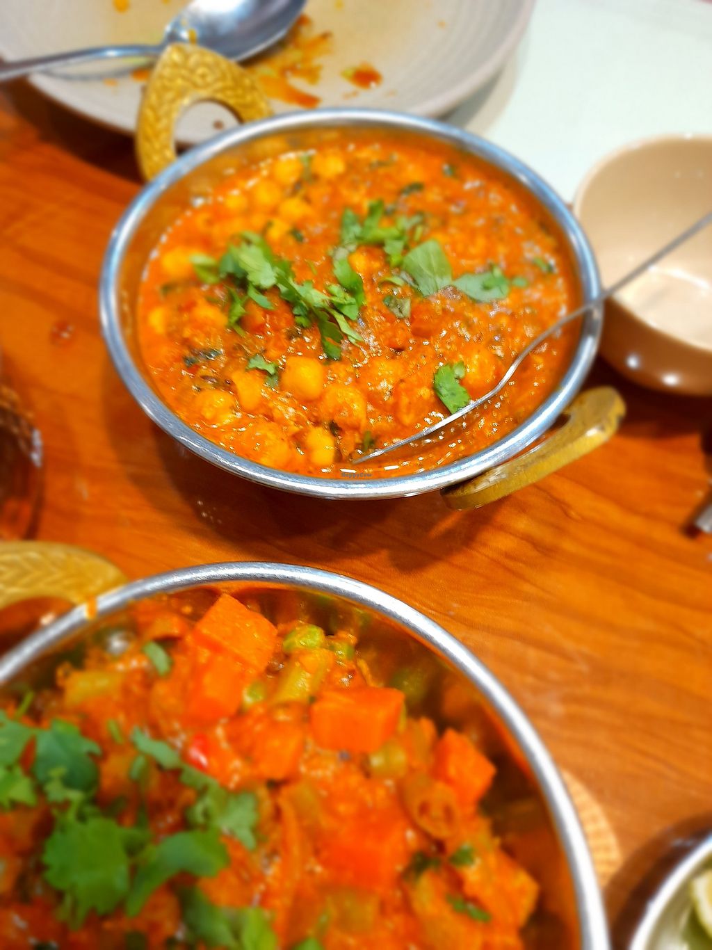 Loved the Chana masala and okra! Naan with no butter really good and vegan