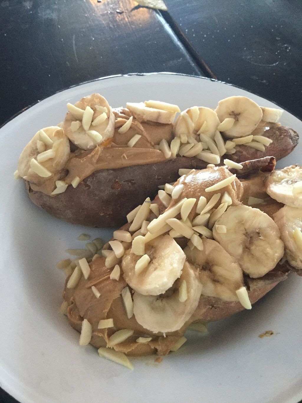 So this place looks nice but I wasn’t impressed by the vegan options. The “Sweet potato split” sounded interesting so I gave it a try. A sweet potato with slivered almonds, banana and peanut butter. The potato was good the almond were from the baking aisle of any grocery store but the banana looked like it had been sliced a couple days ago and the peanut butter was the just too much. I’m. It sure who likes this but not me.