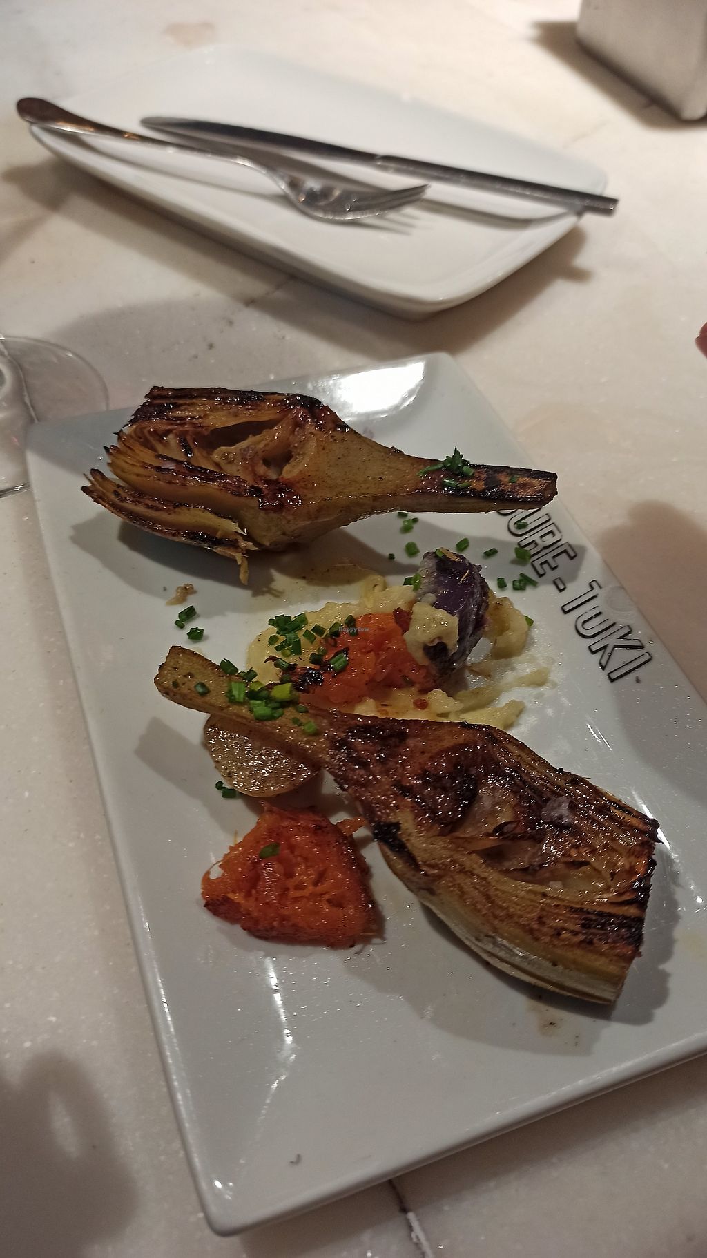 Serves meat, vegan options available. Contemporary Basque tavern and pintxos bar serving regional wines in an industrial-chic setting. Vegan options include Alcachofas a la brasa, a dish of grilled artichokes. Open Mon-Tue 10:00-23:00, Thu-Sat 10:00-23:00, Sun 10:00-16:00.