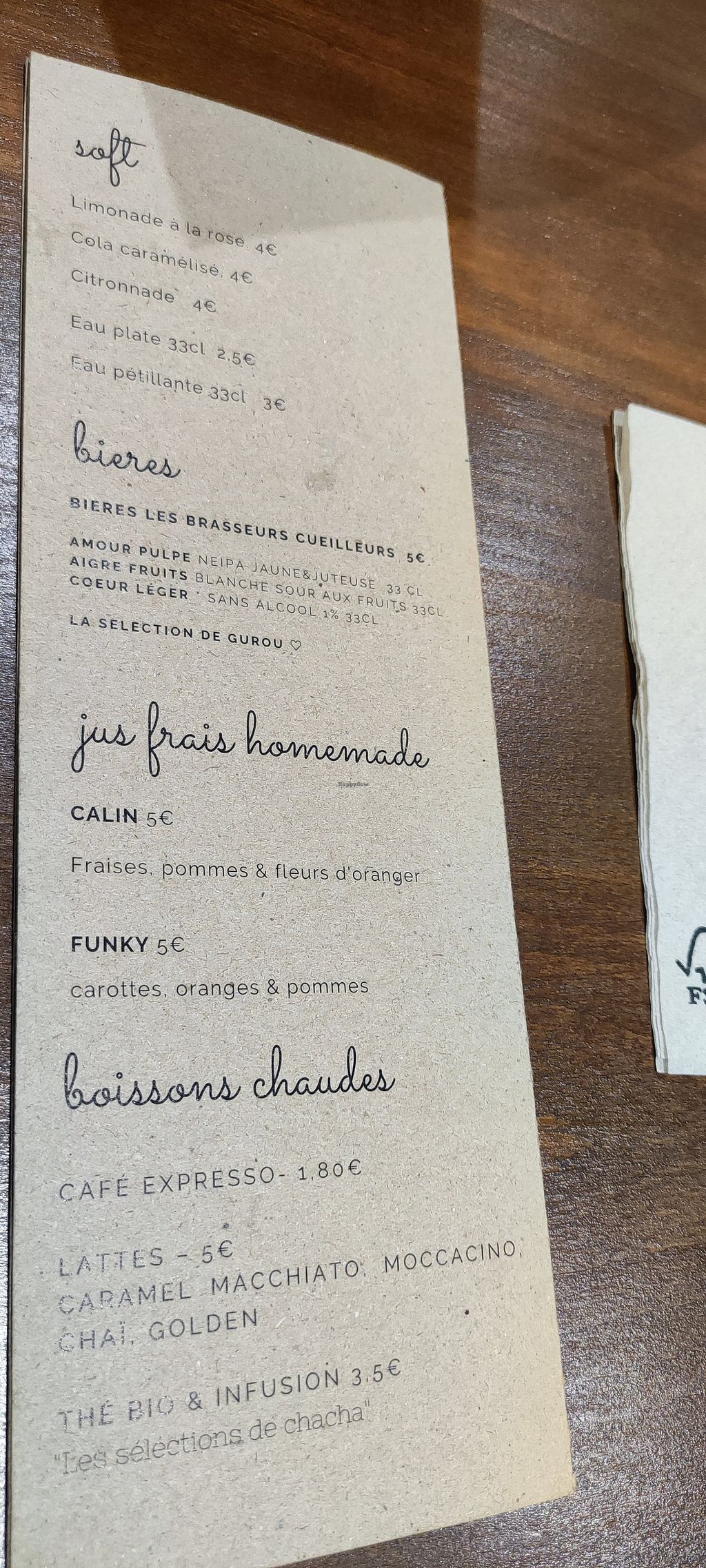 Bien situé, bonne ambiance. La carte est simple, mais donne vraiment envie. Si vous aimez le beyond meat, allez y ! Sinon, un peu déçu par le Bowl, mais les recettes ont l’air de changer souvent, donc ce n’est pas un avis définitif ! Les desserts sont délicieux.
