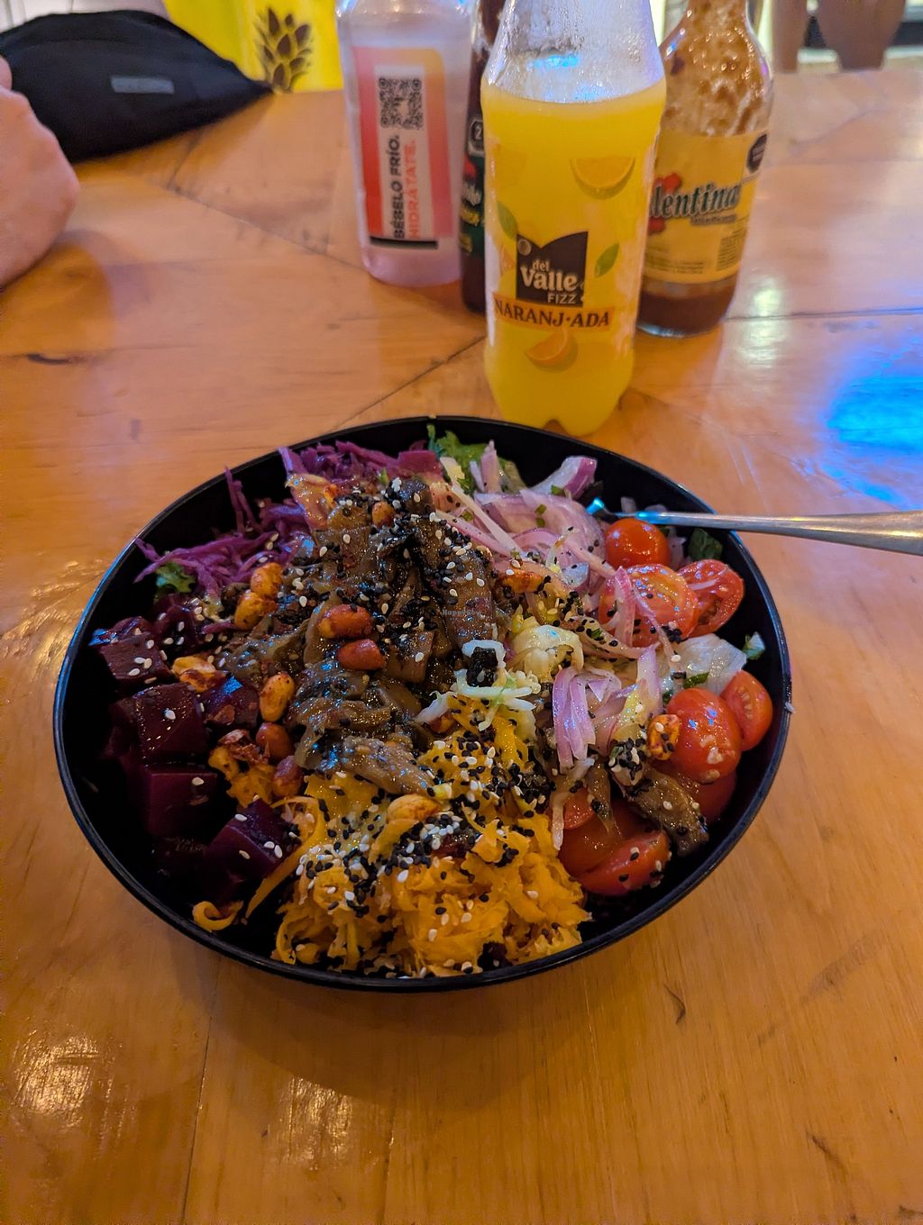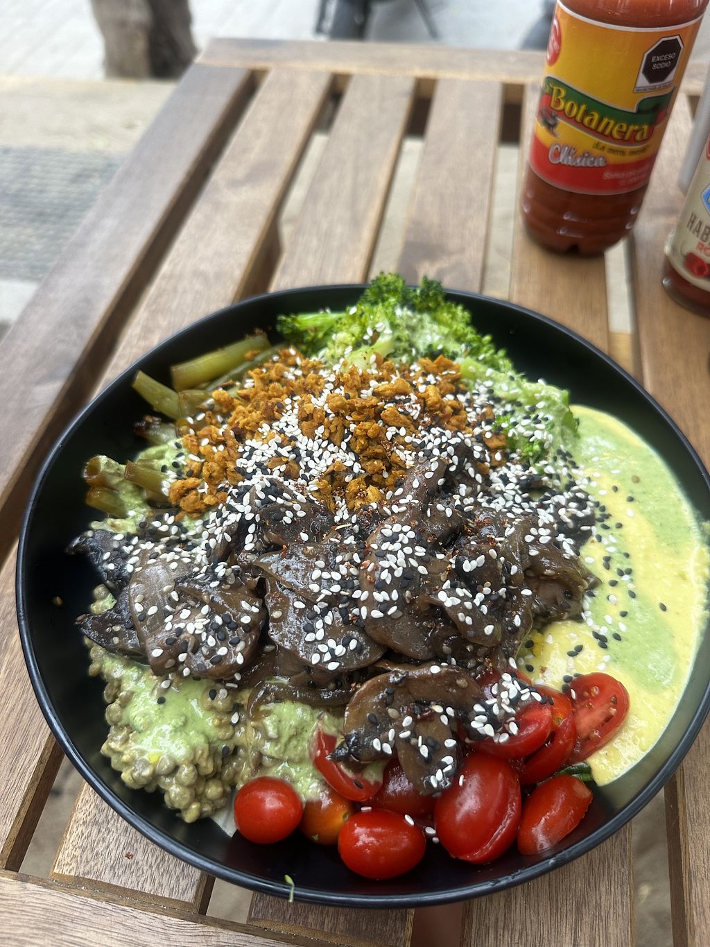 I did not take note of what’s vegan or not, as I’m vegetarian. But I must say this is one of the best meals I’ve eaten in Mexico. So much fresh delicious vegetarian food and SOOO TASTY. The falafels are fantastic and even options like the lentils are so delicious (which lentils are usually quite bland!) all their toppings were surprisingly so flavorsome and tasty. Huge serving too. I had the bowl and my bf had a burrito which is also HUGE. The chipotle hummus is amazing as an option you have to try it. Overall I wish I came to this place sooner.