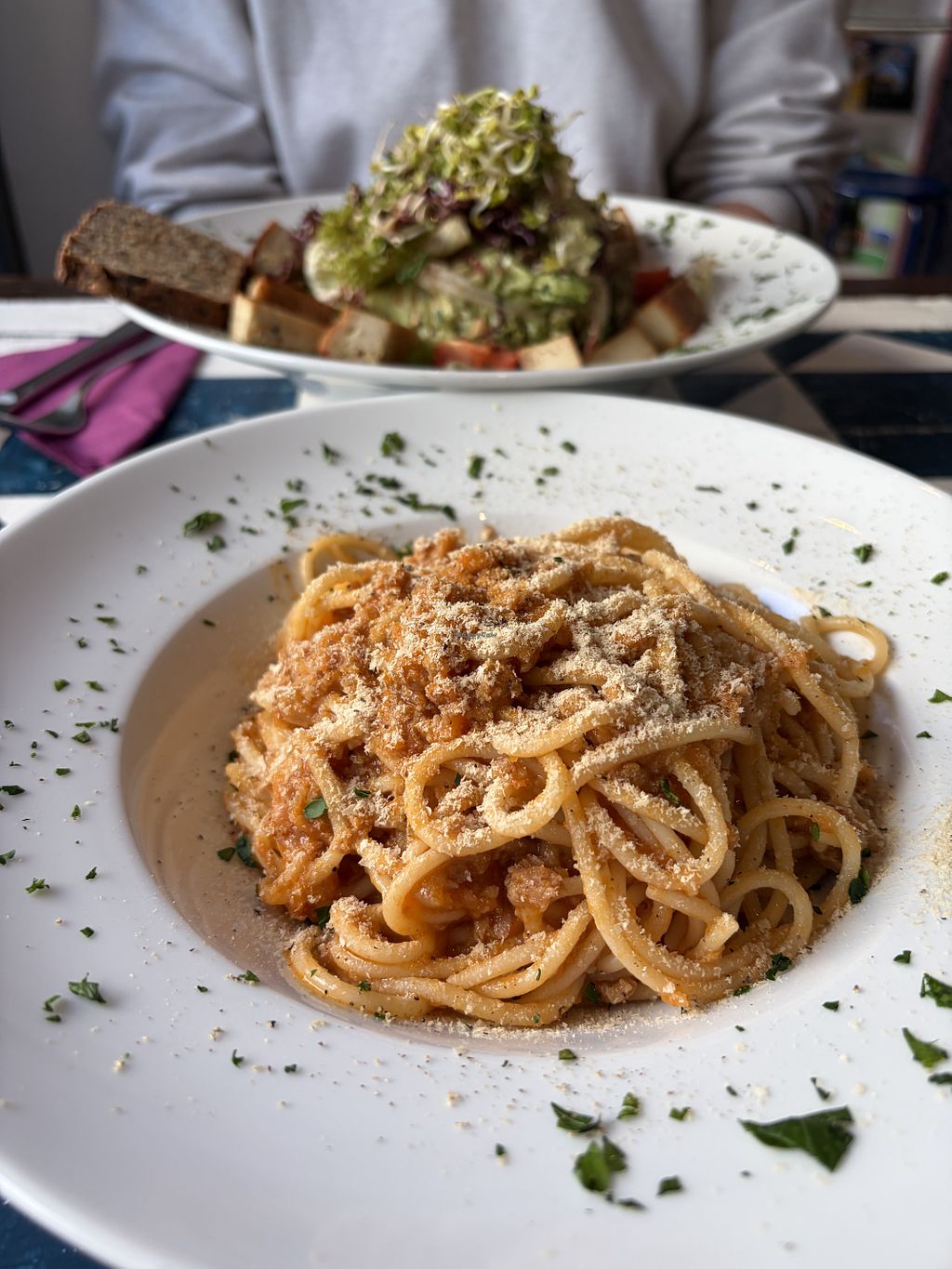 We had the salad and pasta for lunch. The salad with homemade cashew cheese was amazing!