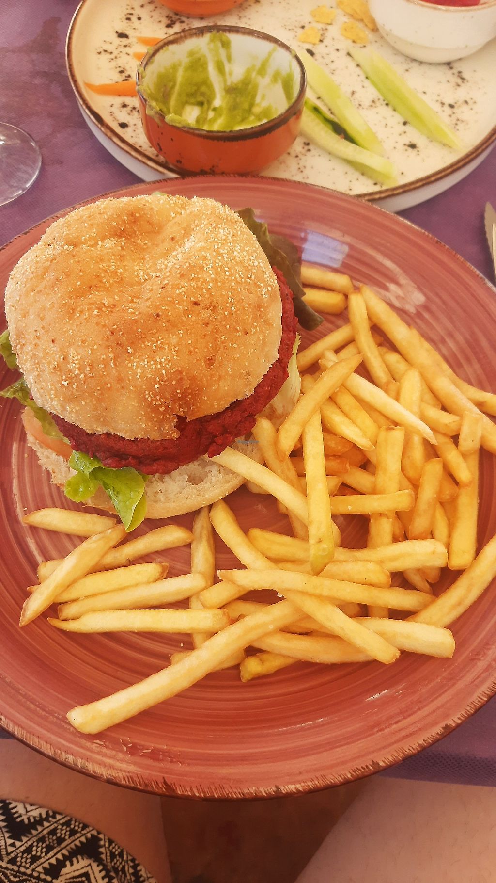 Serves meat, vegan options available. Beach Bar on the promenade with several labeled vegan dishes including a burger, two types of humus, guacamole with vegetable sticks, potato bites, a vegetable wok, salads, gazpacho, and sandwiches. Open Mon 08:30-16:00, Tue-Sun 08:30-00:00.