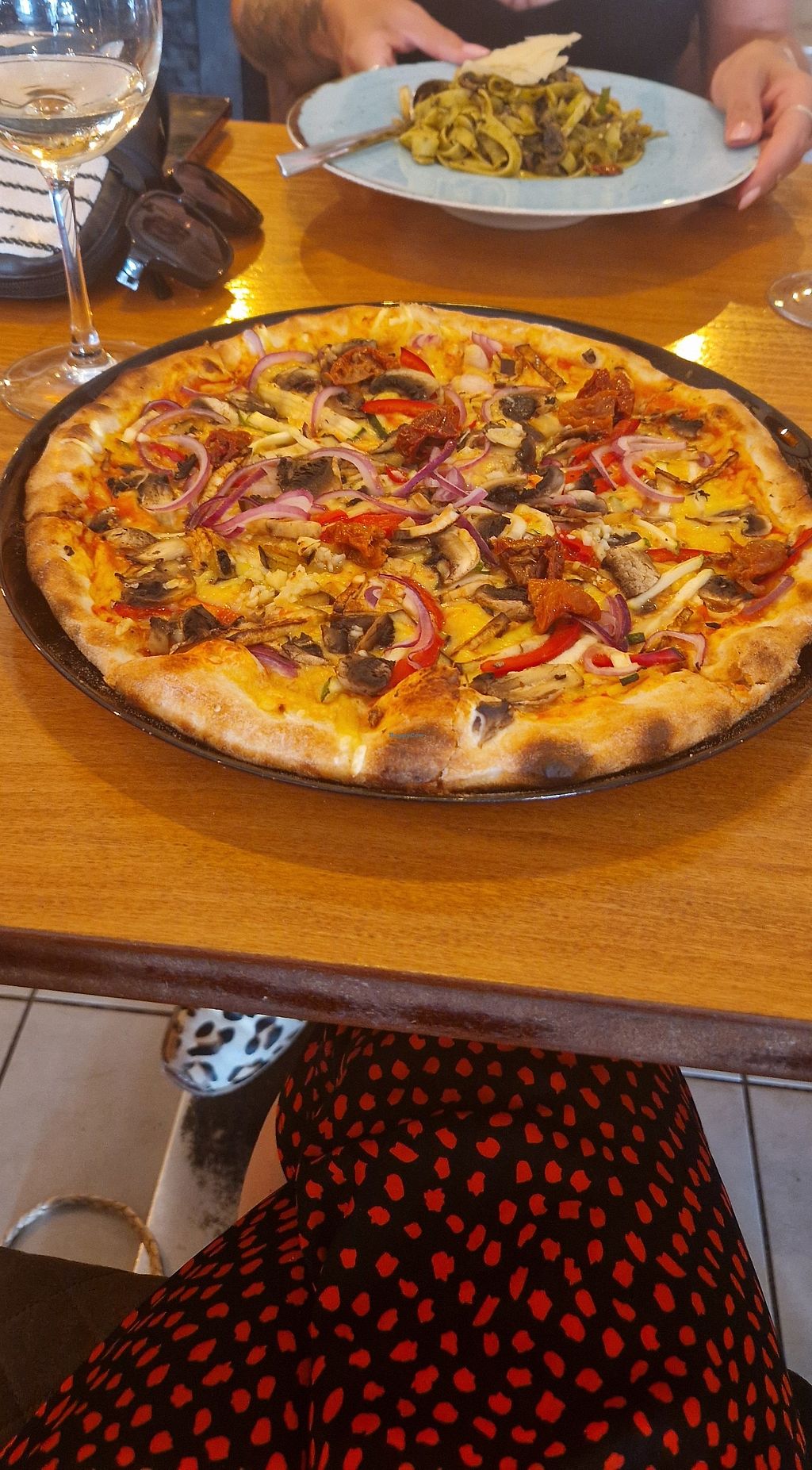 Serves meat, vegan options available. Pizzeria offering a few vegan items such as linguine with soy bolognese, pizza without cheese, salads and bruschetta. Open Mon 18:00-22:00, Tue-Sat 12:00-22:00, Sun 18:00-22:00.