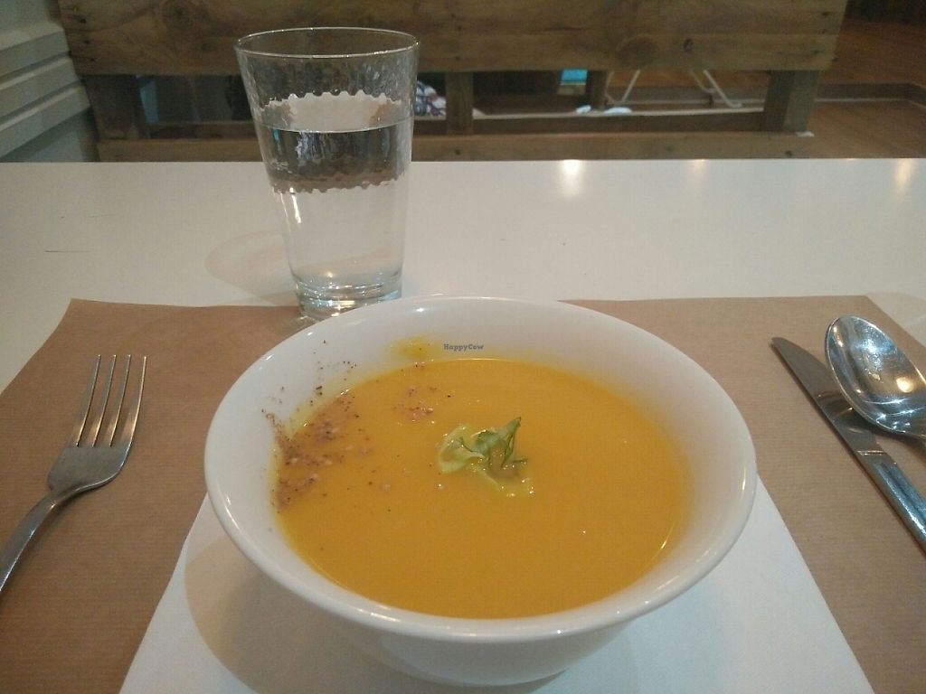This place does what it says on the box. I tried this place as read it was run by a nutritionist. The meal was balanced and delicious. I went for the set menu which was 14.50 euros and unlike some other reviewers who felt the portions were too light, I could regrettably not eat all the food on my my plate. I had a miso starter followed by a delicious crunchy salad My main was rice with mushrooms, broccoli with sesame seeds and two what I might describe as croquettes as the menu was in Spanish a smokey seitan and breadcrumb coated tofu slither topped with a pumpkin puree. The dessert was a raw apple strudel which consisted of a chewy granola base topped with s spiced apple puree with grated Apple ( I will definitely be trying to recreate this dessert at home). I awarded 5 stars as this place is unpretentious and deliver exactly what they promise. My only "complaint" is that I was not offered a drink . I did however receive a carafe of tap water. .