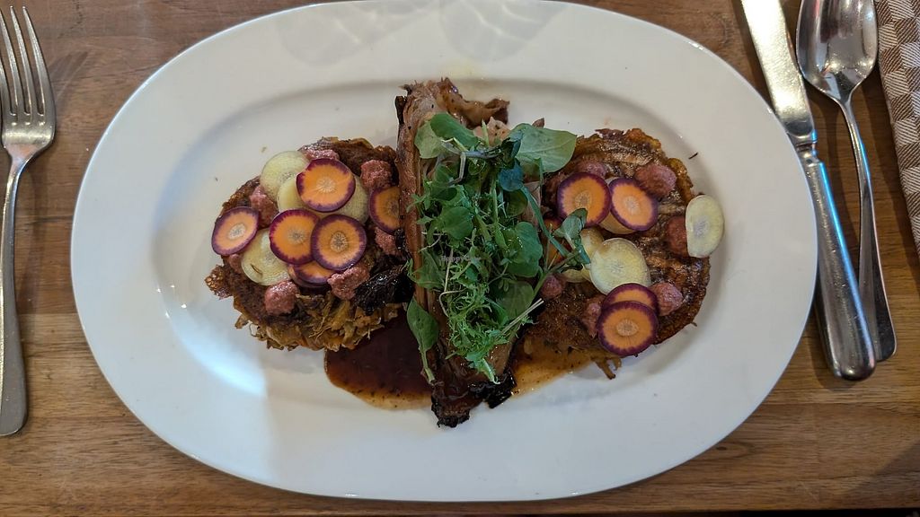 Gourmetküche aus lokalen und saisonalen Zutaten. Leider muss man explizit nach der veganen Option fragen und bekommt, wenn erforderlich, im Vergleich lieblosen veganen Ersatz. Ungefragt bekommt man dagegen Muttermilch zum Americano 🙄. Das Gut befindet sich eben auf einen Hof auf dem Tiere herkömmlich bio/Freiland genutzt werden. Insgesamt fühlen sich Fleischesser hier wohler als Veganer.