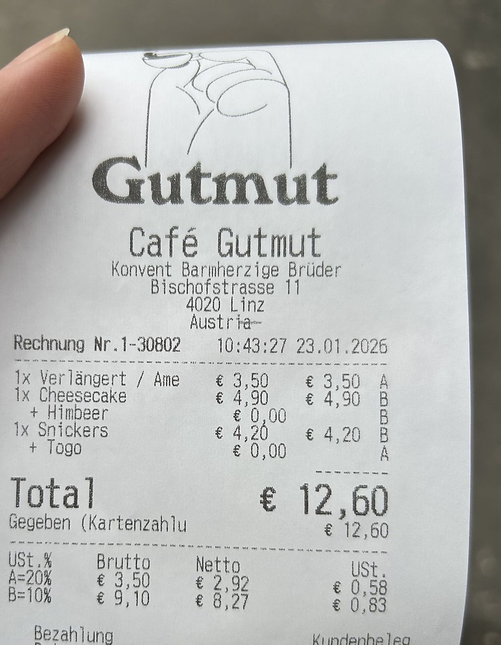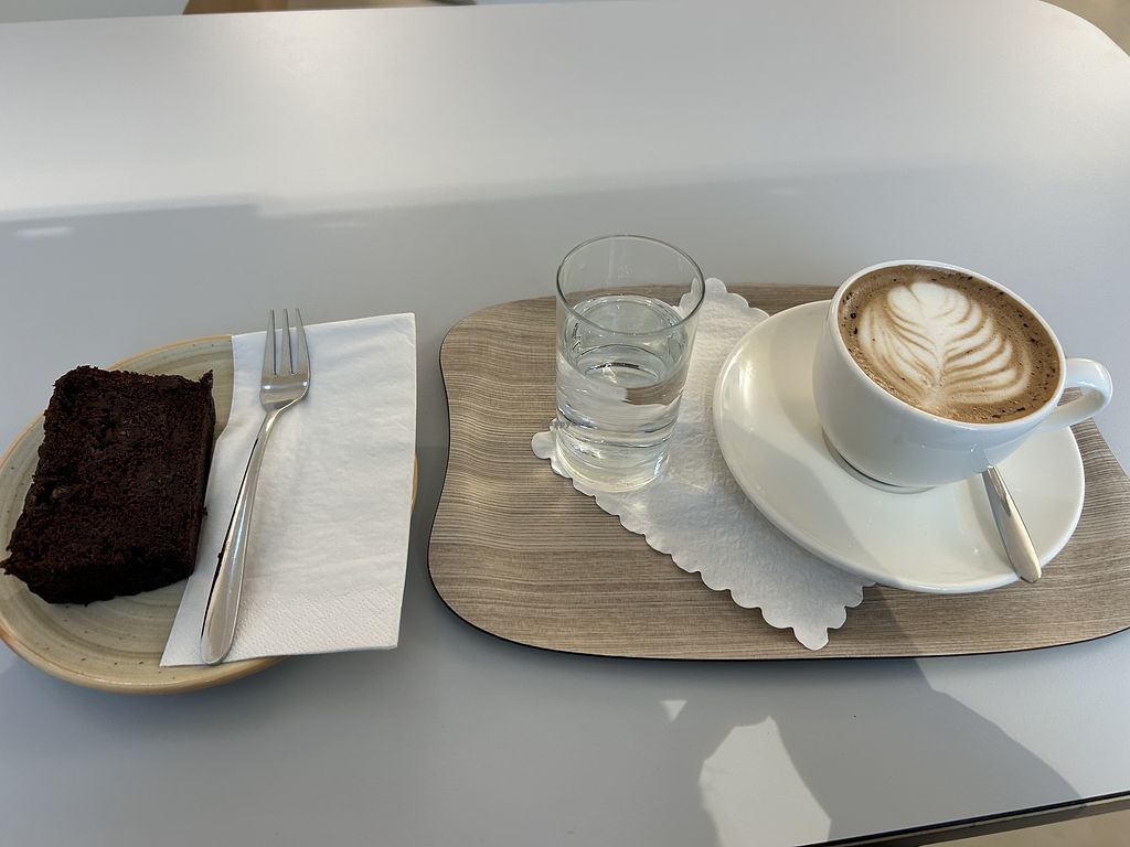 Zucchini-Schoko-Kuchen 4,90€, Caffe Mocha mit Hafermilch 4,80€