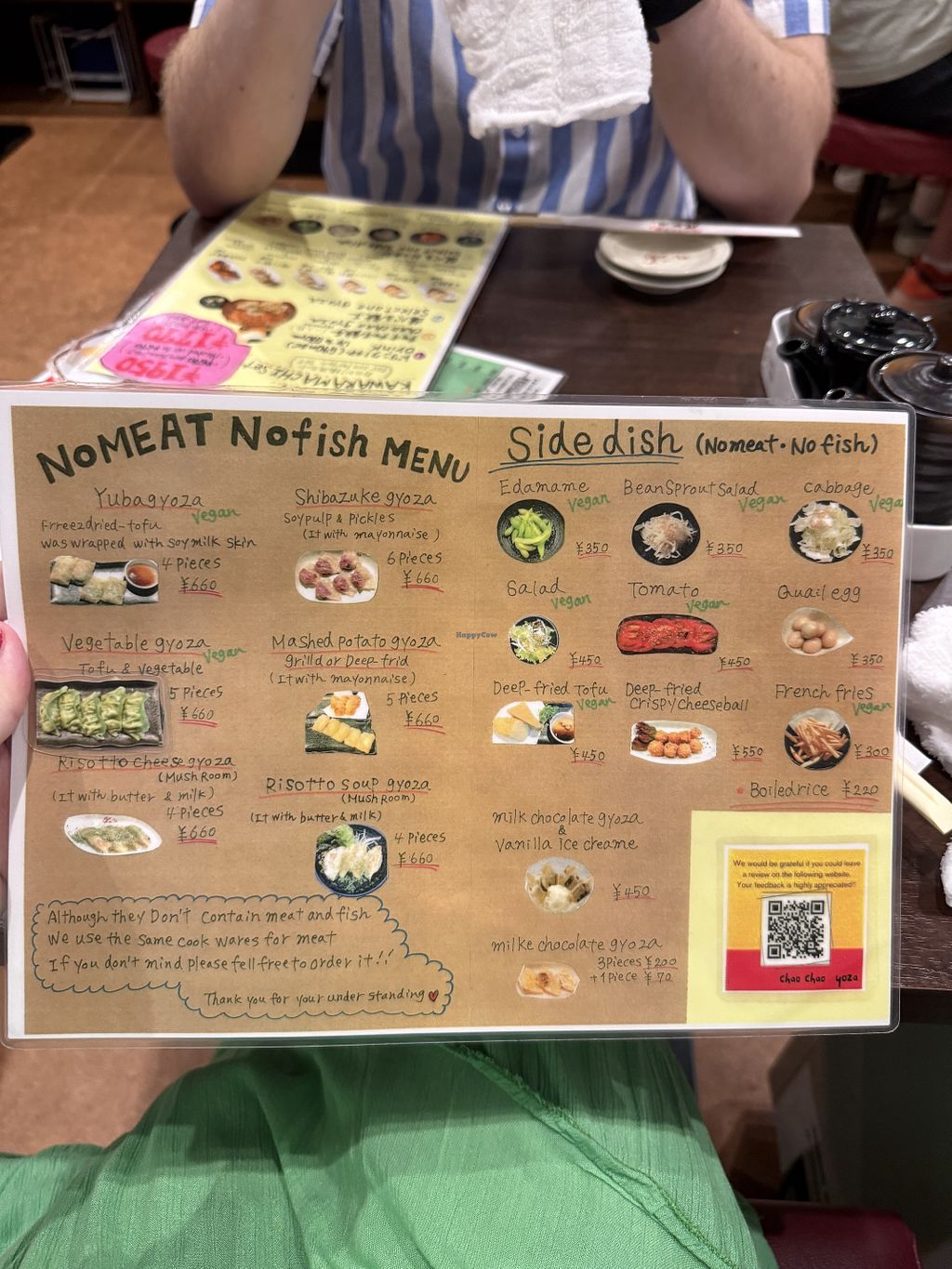 I reaalllyy loved the Goyza and all the menu! All vegan stuff is clearly labeled. We had to wait for an hour to get a table, but it was worth it.