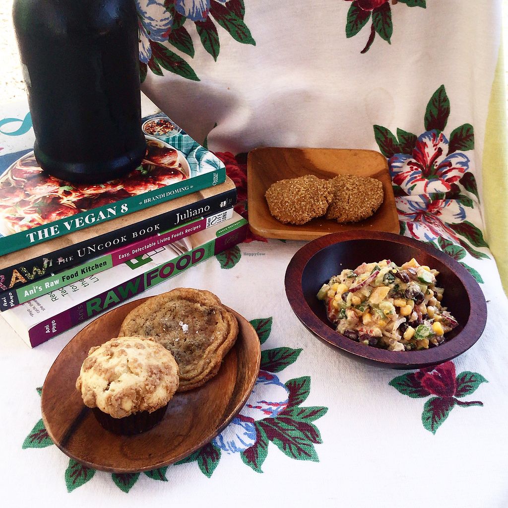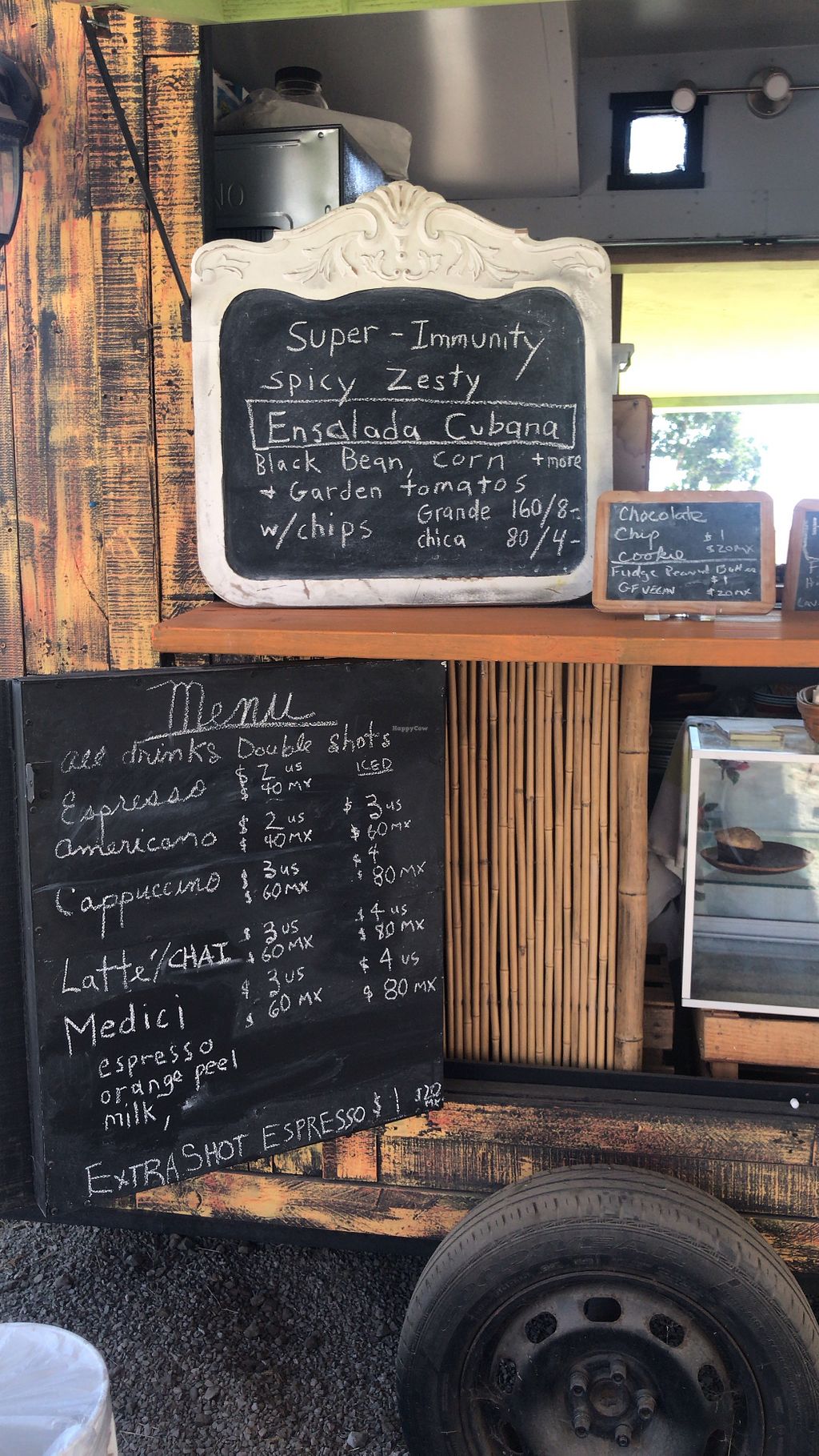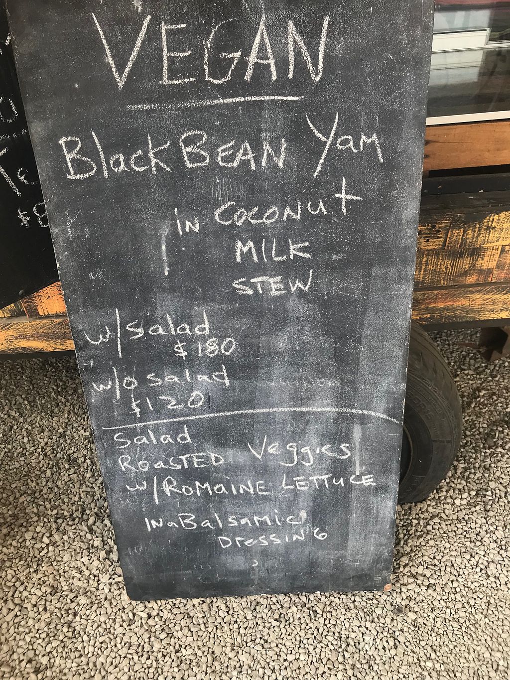 Food truck offering a range of vegan options including desserts. Menu board is clearly labeled and dishes vary. Telephone number: 12533760089 Open Thu-Sun 12:00pm-5:00pm.