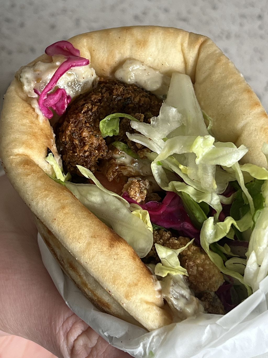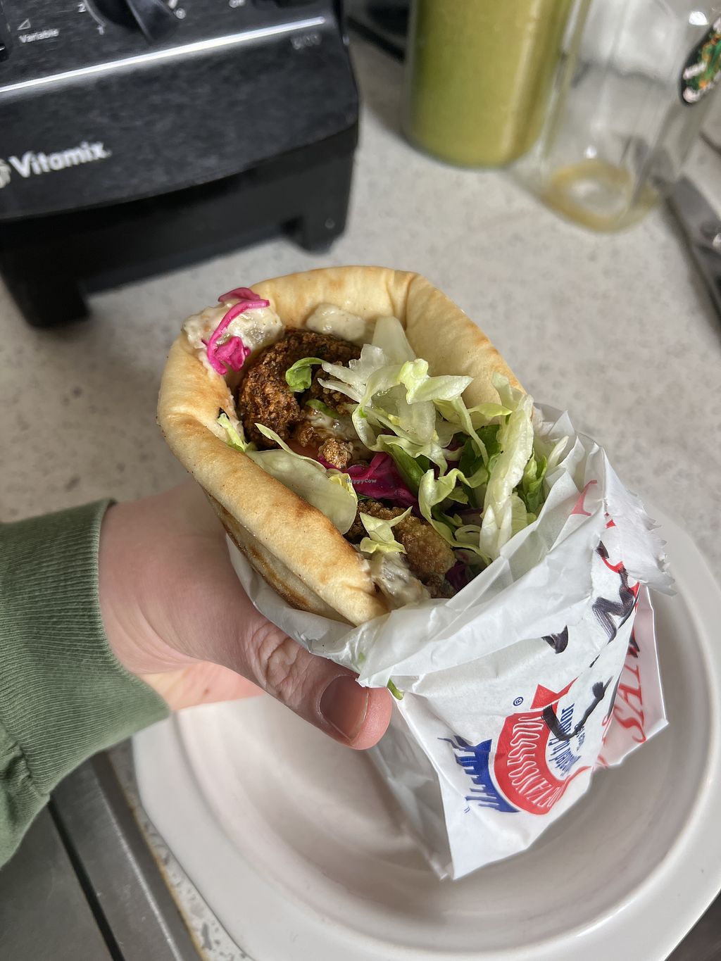 Serves meat, vegan options available. Fast casual pita shop serving Levantine cuisine. Example vegan offerings include stuffed grape leaves, fried cauliflower, falafel pita, hummus and more. 11am- 10pm