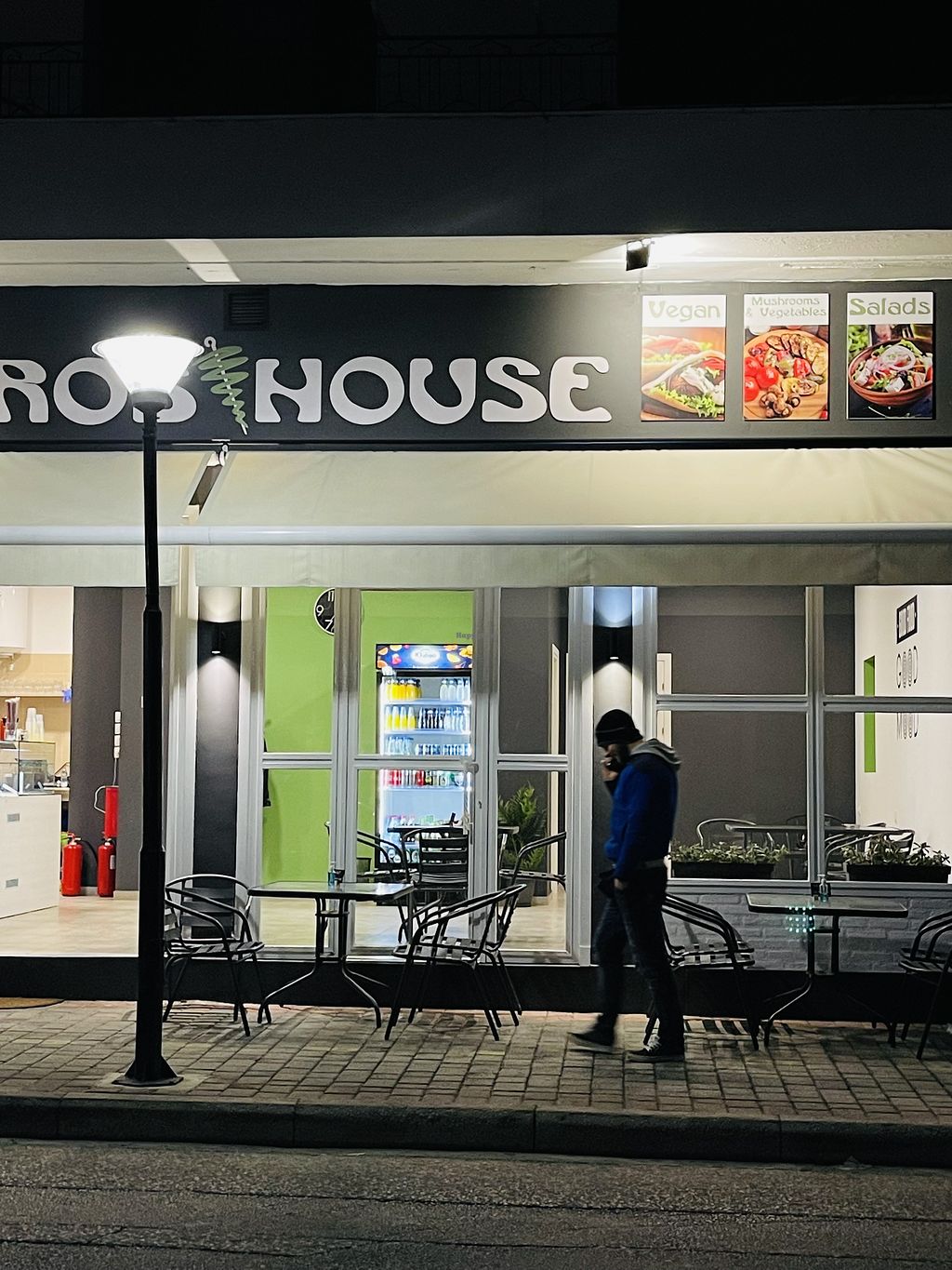 Pros: Great Vegan options., Vegan signs in the window.
