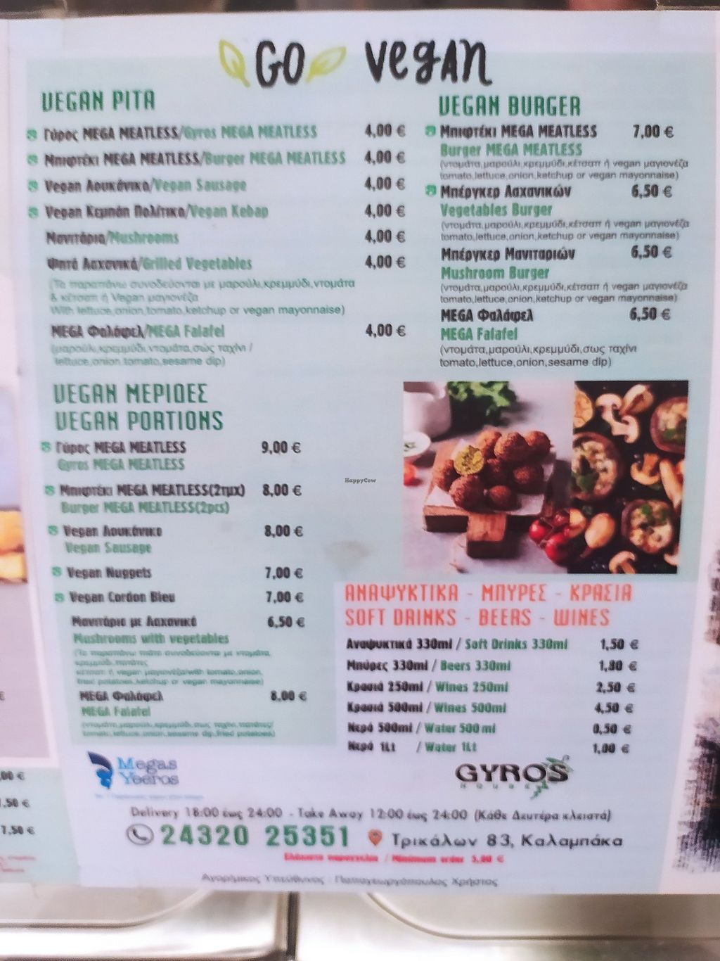Great to have this restaurant in the beautiful little town of Kalabaka. Vegan Gyros was great, we haven't tried all the other vegan options. Prices absolutely fair and very nice service. Also, there are gorgeous little (hungry) cats outside!