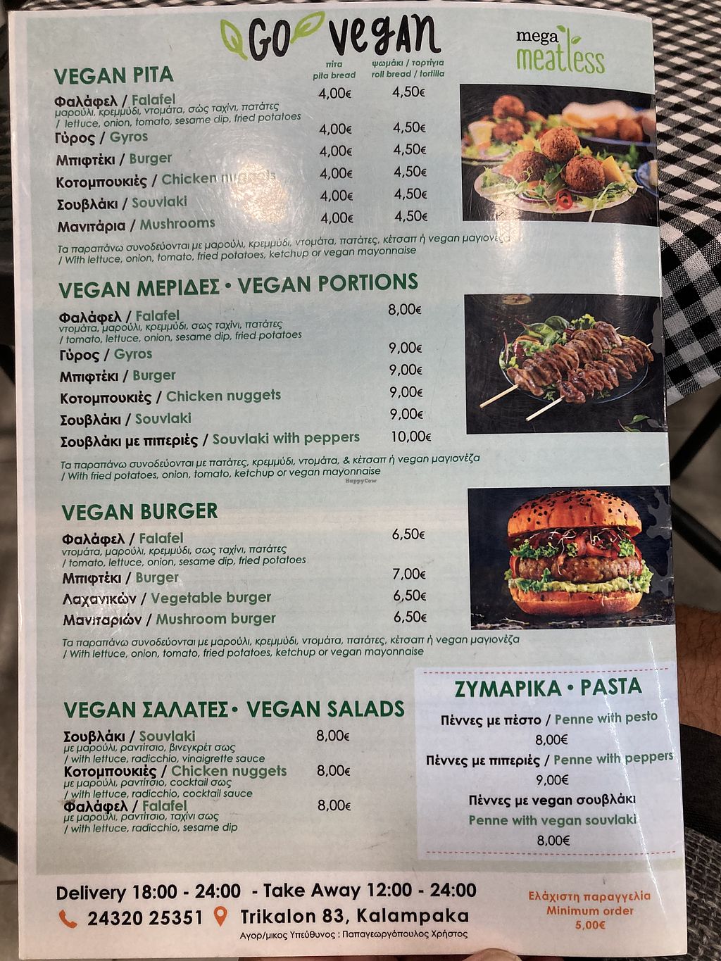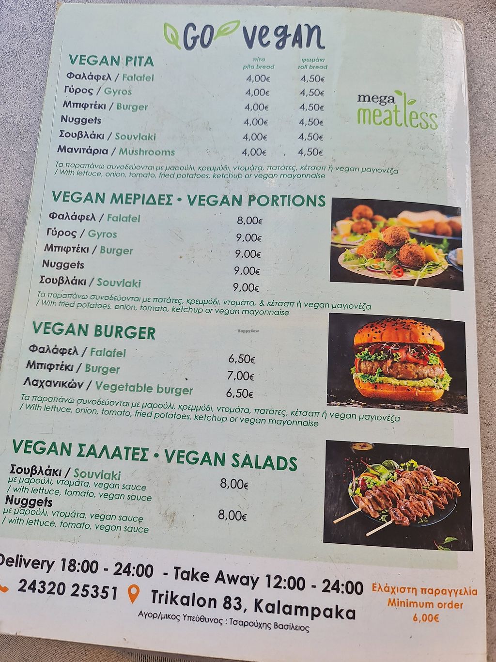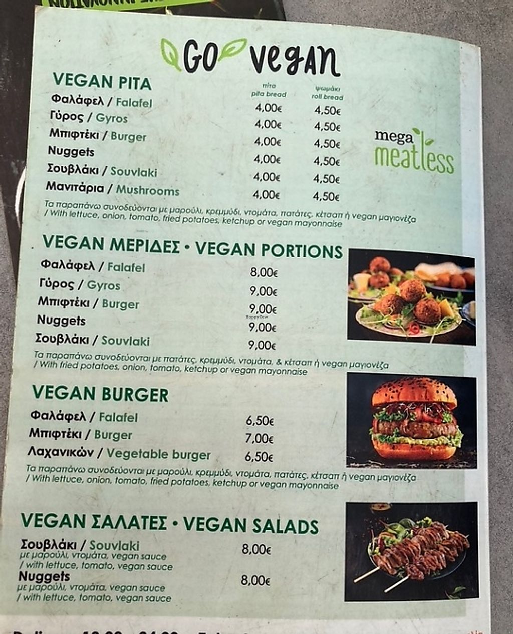 Section Full vegan menu with gyro and souvlaki.