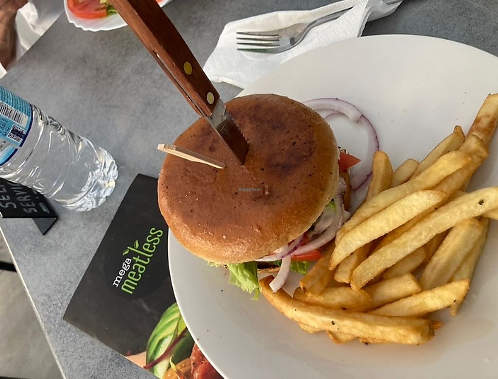 We had a burger and a souvlaki salad; both tasted great. We came early, so I believe we’re the first customers of the day. If we came later, I would be a bit concerned about cross contamination, since they serve meat here and seem only to have one grill.