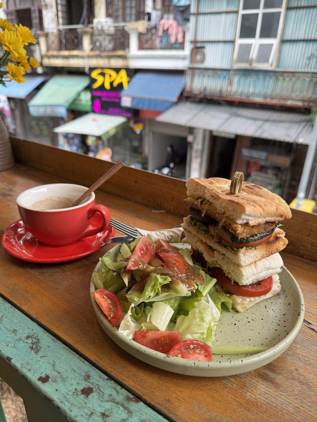 A very cute place with a cozy second floor overlooking the street. I went with three vegetarian and vegan friends, and we all had such a great time! We shared a panini, a Vietnamese salad, and a smoothie bowl—everything was delicious. Definitely worth a stop.