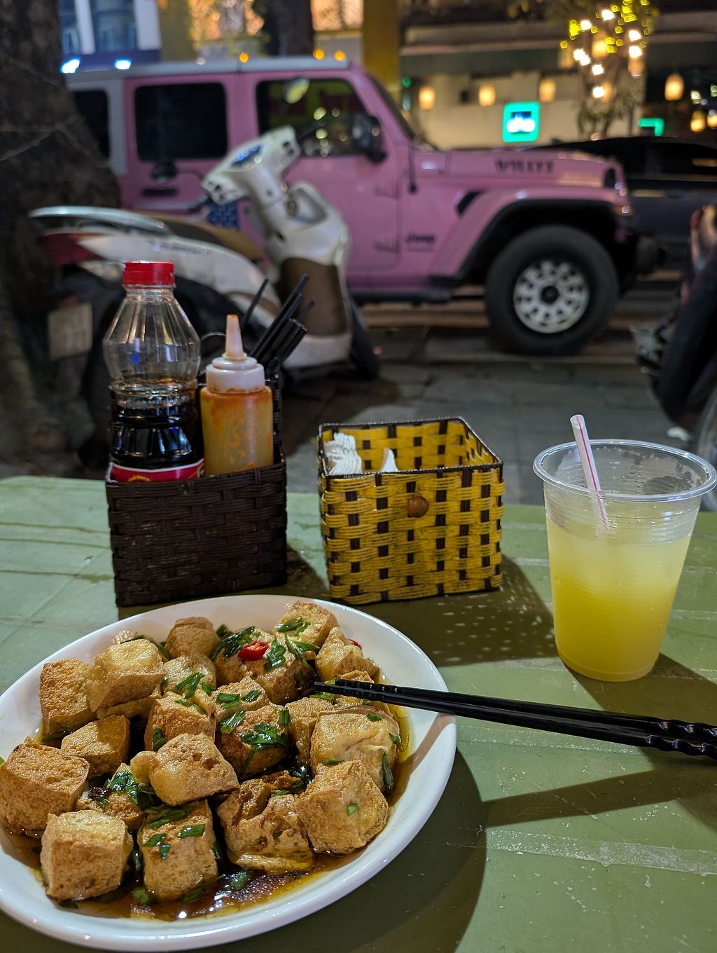 Fried Tofu, Rolled "Phò", Peanuts, Fried Morning Glory, Draft Beer