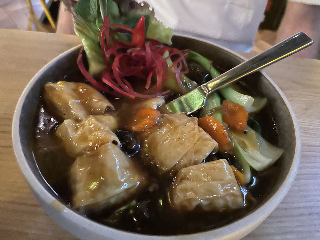 Went to HA for yesterday's lunch. They offer a wide range of vegan dishes and everything sounds mouth watering. We chose from their business lunch selection. I had vegan Pho as well as a dessert from the regular menu, fried coconut balls (only 3 pieces). Taste-wise an absolute blessing. The dessert was to die for. The restaurant itself has a lovely concept and is really inviting. An absolute recommendation.