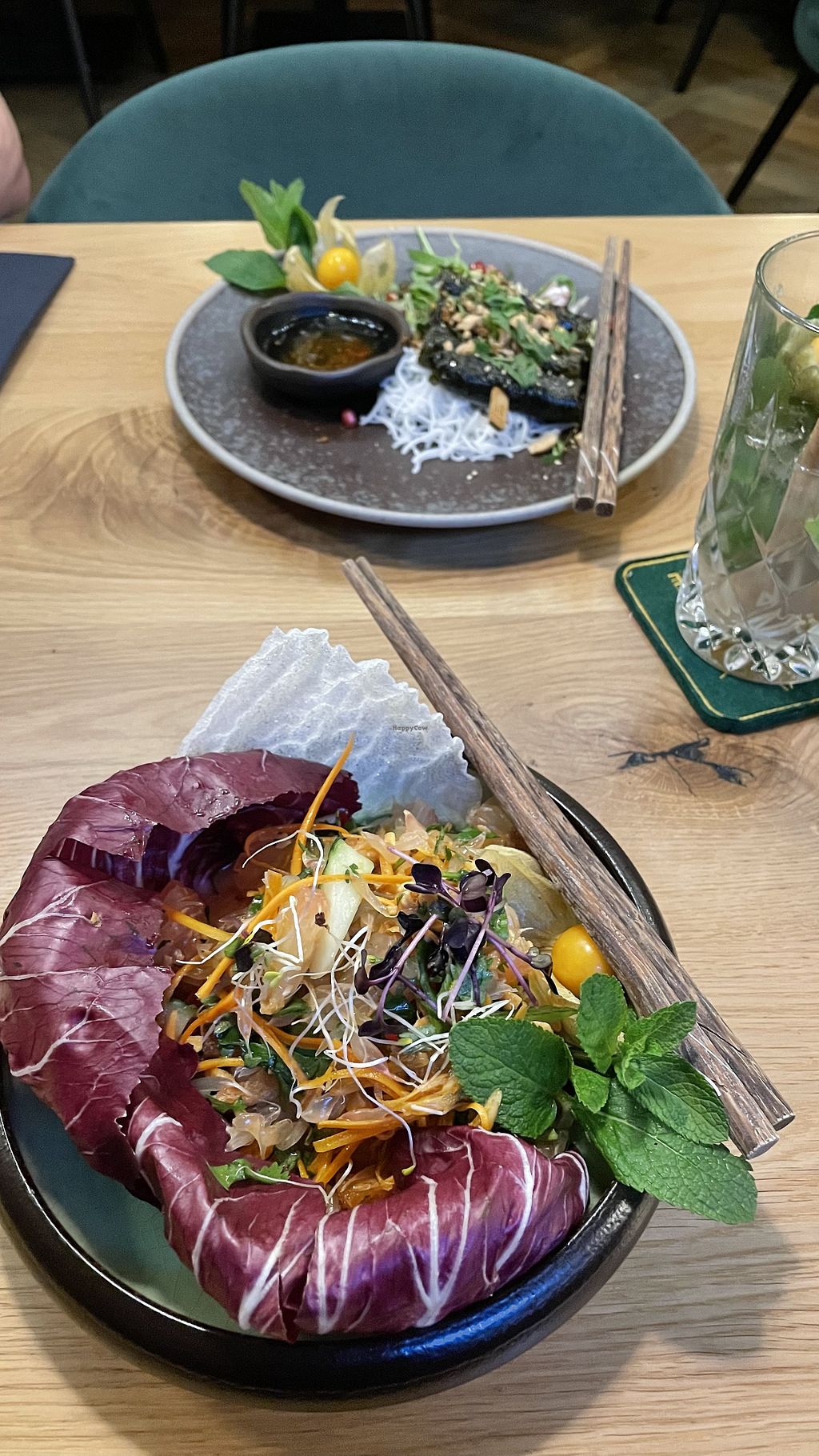A lot of vegan choices. Fiendly staff. Very nice decoration, but a bit dark. The food looked wonderful. Very nice food, but too much salt or vetsin in it.