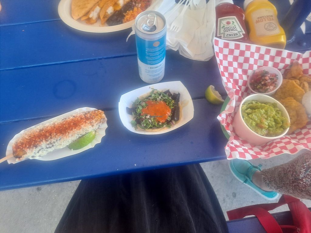 Two eggplant tacos and vegan elote!