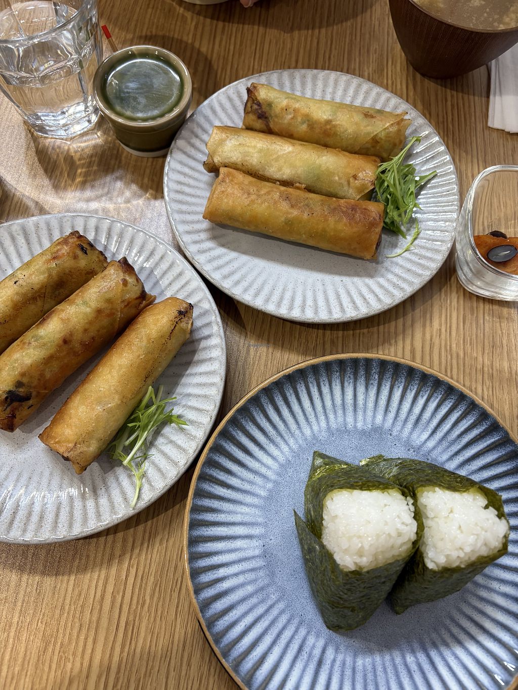 Spring rolls and onigiris