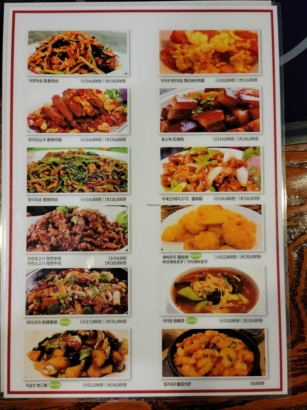 This is a delicious Chinese restaurant in Hongdae. It offers a variety of dishes that one can order vegetarian and vegan (they have a green 'sticker'); explicitly state that you are vegan. I can recommend the 마파두부 (tofu in a sauce with chili and beans). The staff there was very friendly, the food arrived quickly and the price was totally fine. Would totally recommend it.