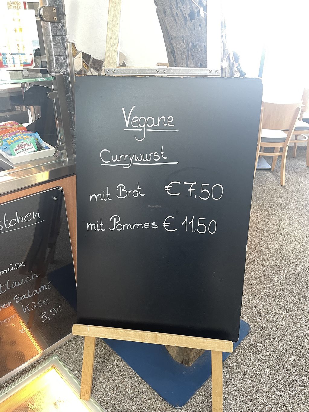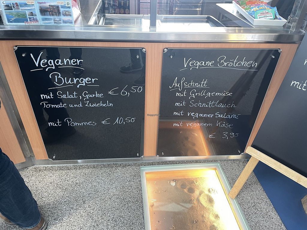 Serves meat, vegan options available. Bistro offering vegan frikadelle, vegan burgers, and fries. Open Mon-Thu 08:00-19:00, Fri-Sun 08:00-20:00.