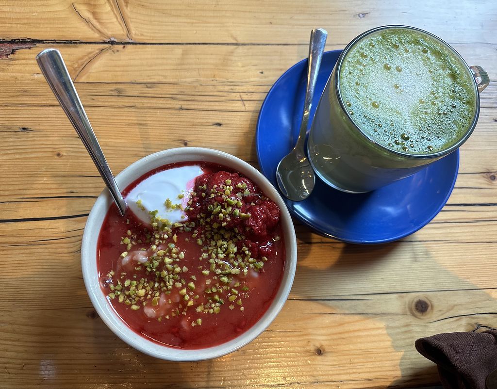 Matcha Latte mit Hafermilch + Bananenbrot mit Walnuss