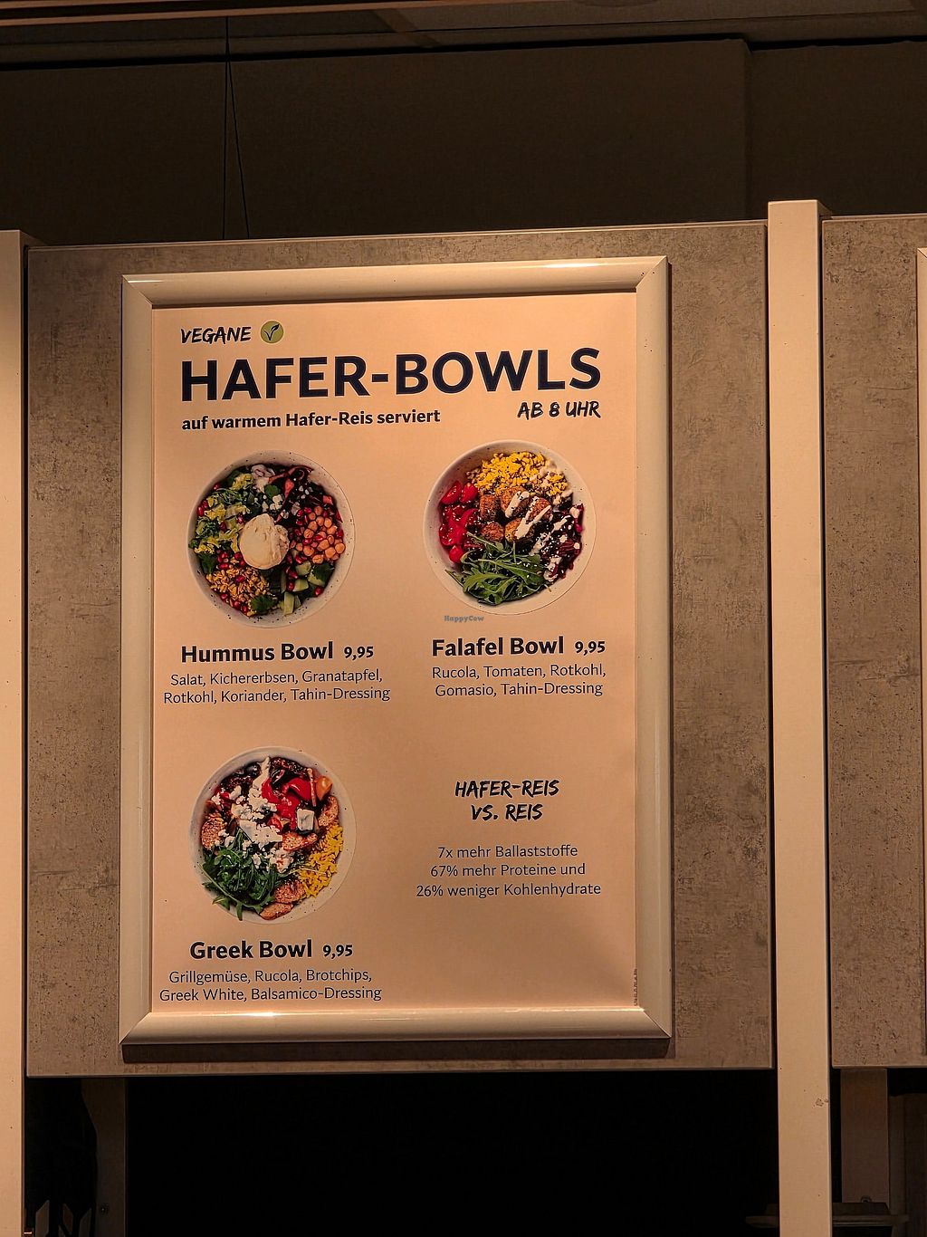Vegetarian German cafe chain with a main focus on porridge with a variety of vegan toppings and add-ins. The menu also includes vegan ready-made Mediterranean-style bowls, energy balls, and cakes. Vegan choices are all clearly labeled. Plant-based milk alternatives available. Some locations may also offer vegan sandwiches, salads and wraps. Please note that most locations offer minimal or no seating. Open Mon-Fri 06:00-20:00, Sat-Sun 08:00-20:00.