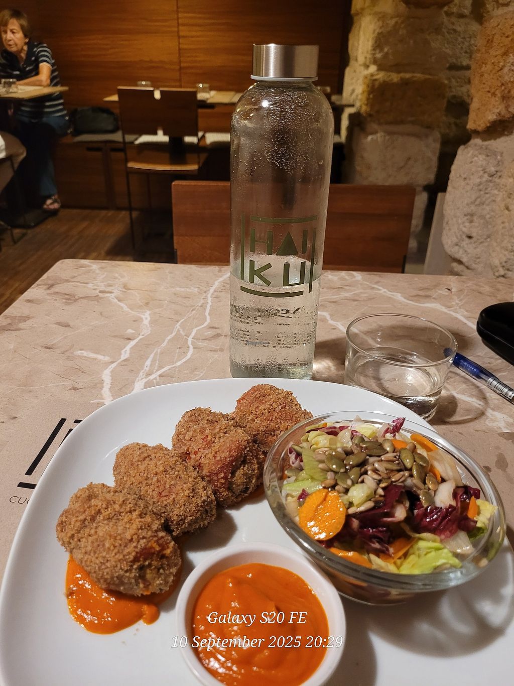 Fresh sparkling or still water provided in glass bottles, Haiku had a menu to die for! Expertly crafted vegan food and so many tasty desserts! We wanted to try it all!!