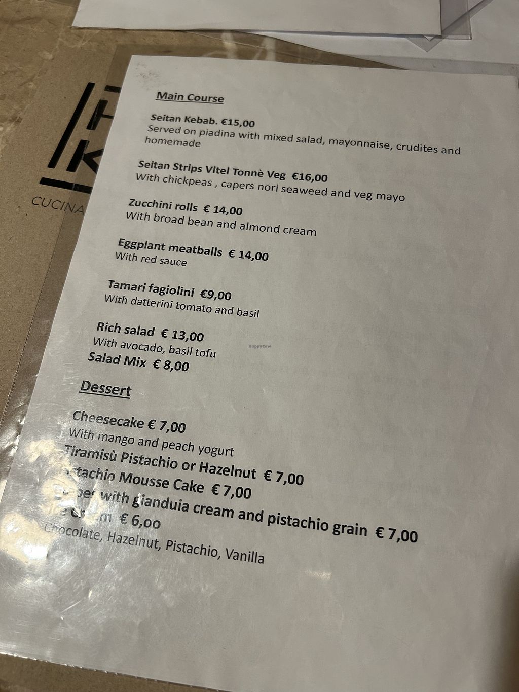 Hat eine Menükarte mit unterschiedlichen Gerichten, welche saisonal wechseln. Alles wird frisch zubereitet ausser die Pasta, welche in Bio-Qualität gekauft wird. Ich hatte die mit Humus gefüllten Zucchinirollen. Schmeckten gut! Das Restaurant ist gut - aber für mich nichts besonderes.