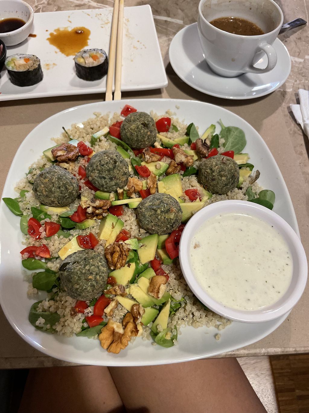 Tried vegan sushi and seitan kebab. The food was ok, nothing extraordinary. Felt overpriced.