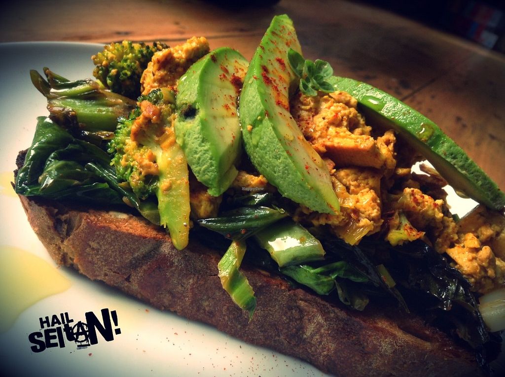 Scrambled Tofu on Toast w/ Avocado, spinach, garlic tahini & truffle o…