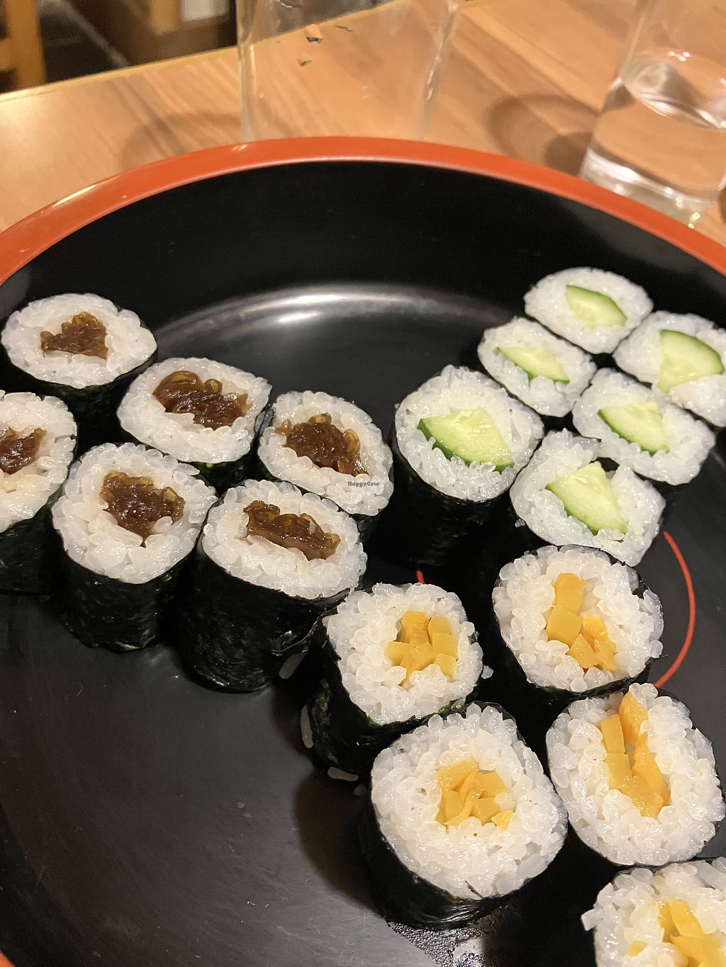 Large choice of vegan sushi, small but cosy place. We had kappa maki, inarizushi, and a large mix of vegetable sushi. Definitely recommended.