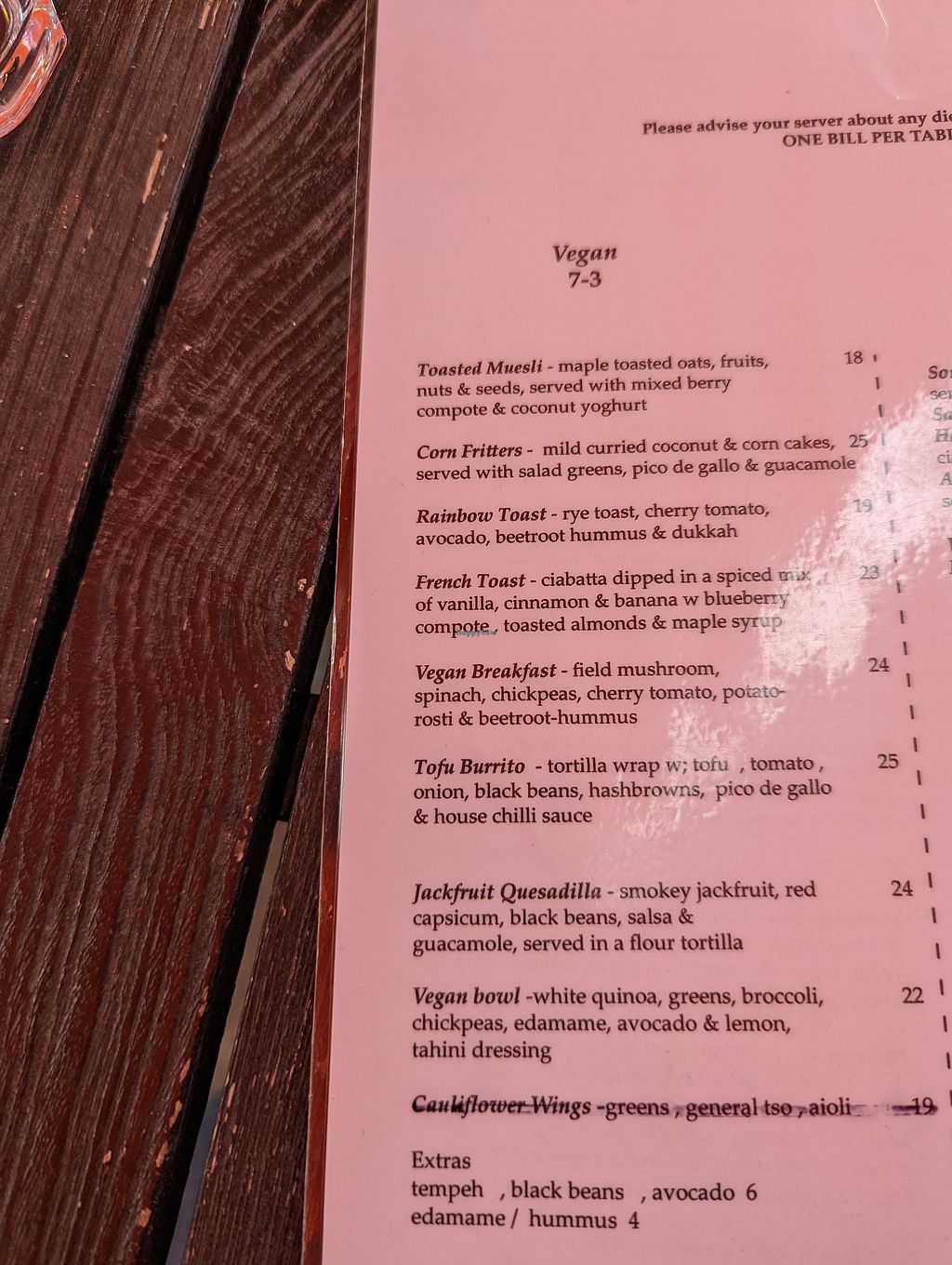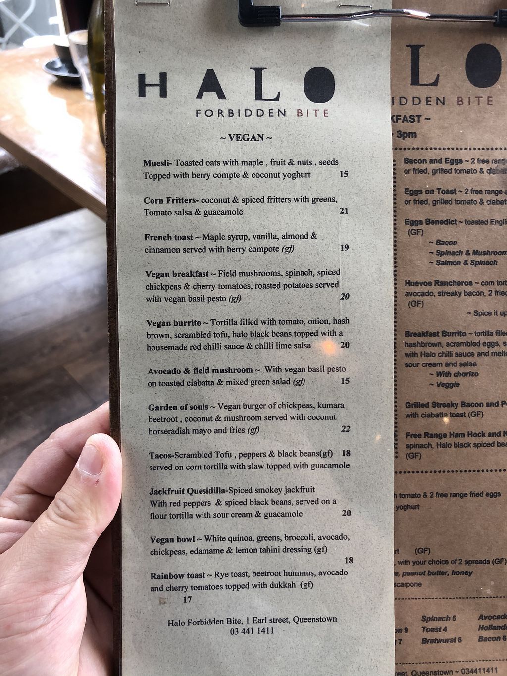 This place has its own vegan menu (not visible on their website) but the options are great and reasonably priced compared to a lot of over inflated prices in QT. Food always tastes great. Breakfast favourite