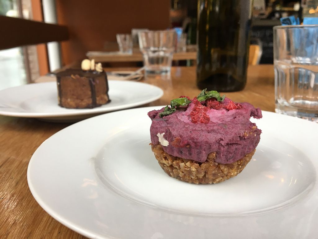 Loved the vibe, the service, and the food. For an omni place, the chef was very inventive and the food we had was excellent (did 3 courses - arancini and cauliflower bites to start, tagliatelle and chickpea burger for mains, and both dessert options - brownie and lemon cream). All the food was rich and flavoursome and I was extremely pleased with the effort and finesse put in. The vegan red Rua wine was also excellent and all the tap beers are vegan. Dessert was the least tasty course and I would probably skip it if I was ever back in town, but it was still good - but the starters especially were exceptional