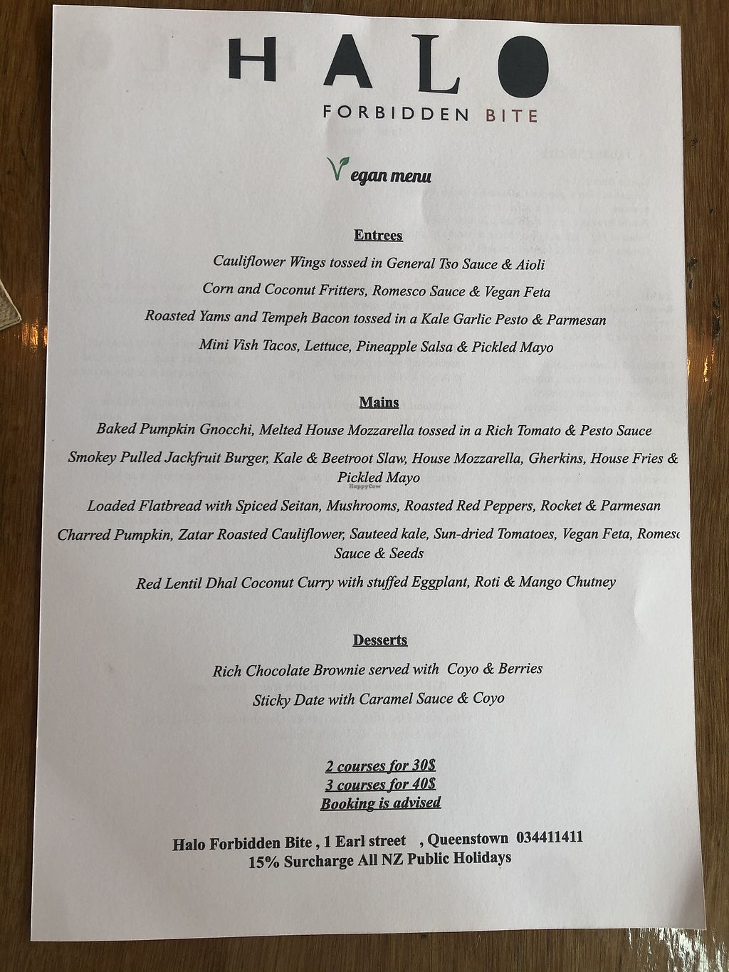 Read moreTuesday and Thursday nights Halo has vegan night. 2 courses for $30, 3 courses for $40.