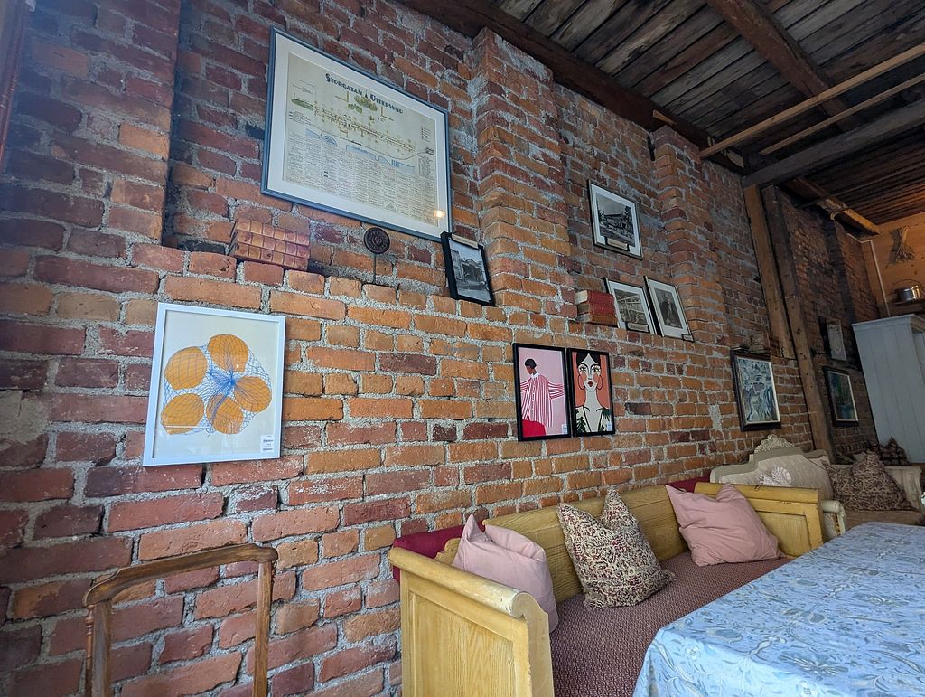 Serves meat, vegan options available. Restaurant and café combined with a second-hand store and local art. Vegan options include a hummus plate, bowl, vegan cheese and tomato sandwich, saved fruit juice, and smoothies. Please note that many businesses in Sweden are cashless. Open Mon 10:00-06:00, Tue-Sat 10:00-18:00, Sun 10:00-16:00. Closed Sun.