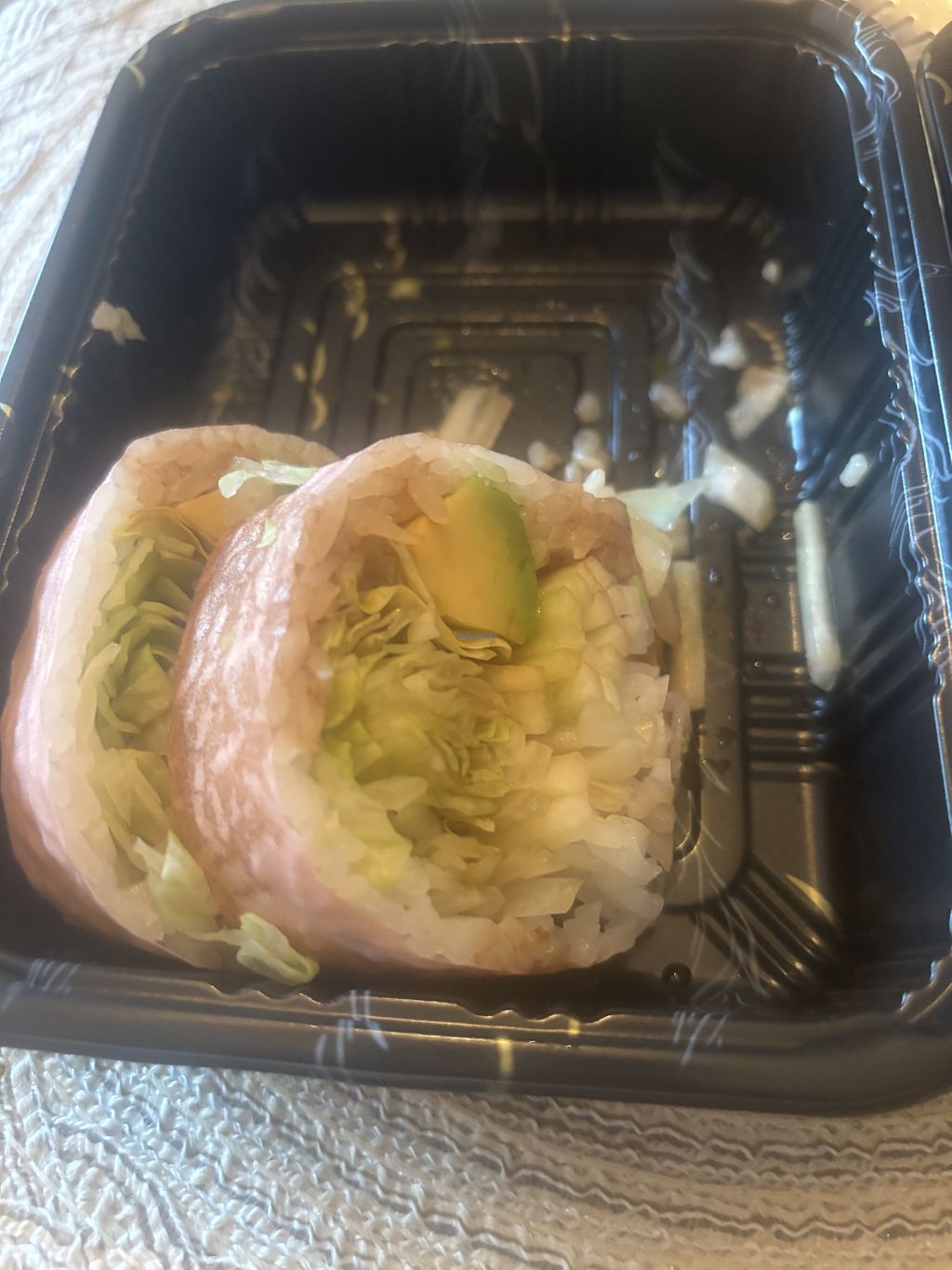 I got sushi rolls: the sweet potato and avocado, both with soy rolls. It was very good!