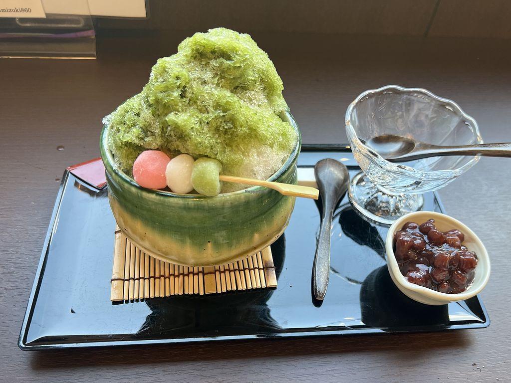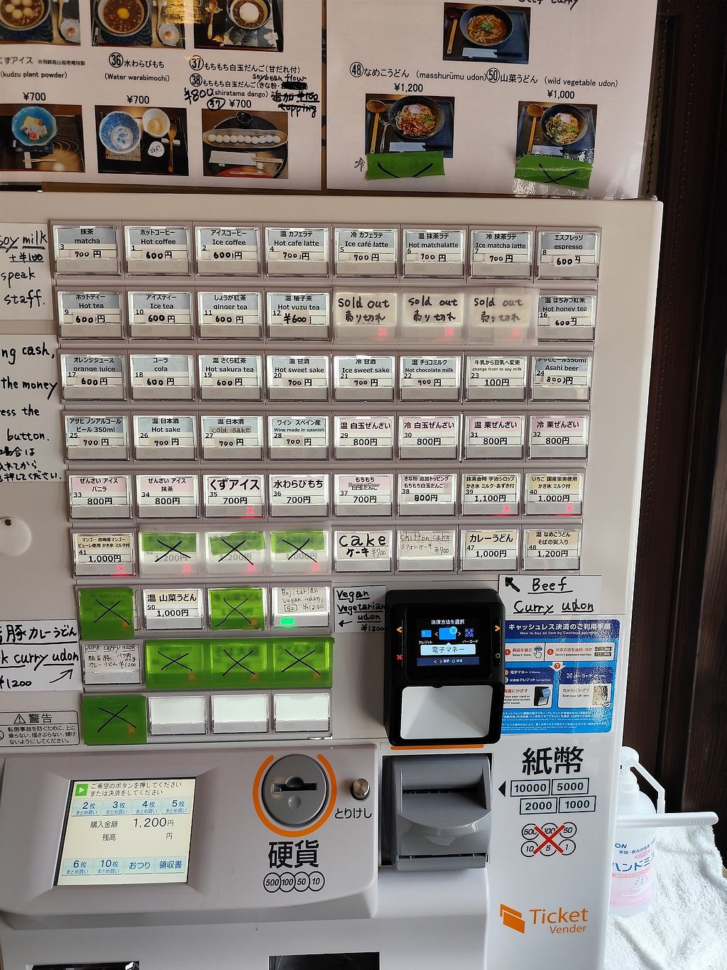 My sister and I both enjoyed our lunch here! You order from a machine and then the staff brings you your food when ready. We got the udon (clearly labeled vegan) and the macha kakigori which I believe is vegan as long as you ask them to not add the condensed milk! When we went around 3pm on a Tuesday it was crowded but we didn’t have to wait for a seat.