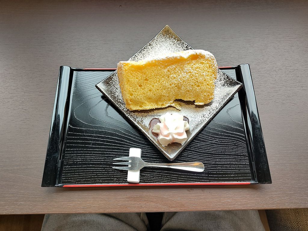 The udon was very good, I ate in front of the window with a splendid view ! And the chiffon cake is amazing ✨